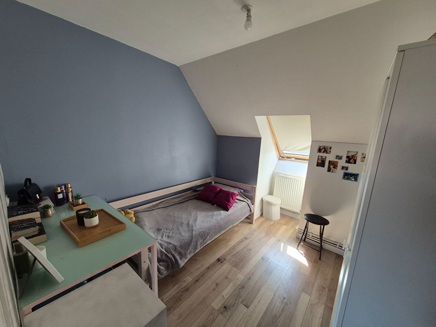 A l'étage la maison propose 4 chambres dont une grande pièce astucieusement cloisonnée pour offrir un maximum de couchages ou de bureaux selon vos besoins. Une salle de douche complète cet espace nuit.