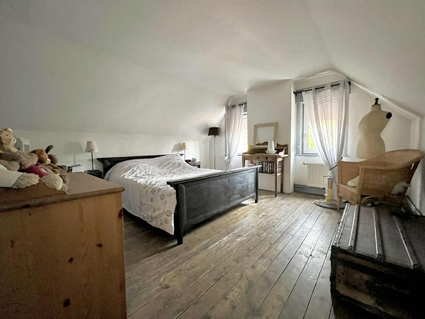 À l'étage, trois chambres et un grenier entièrement aménagé en quatrième chambre complètent l'espace nuit.
