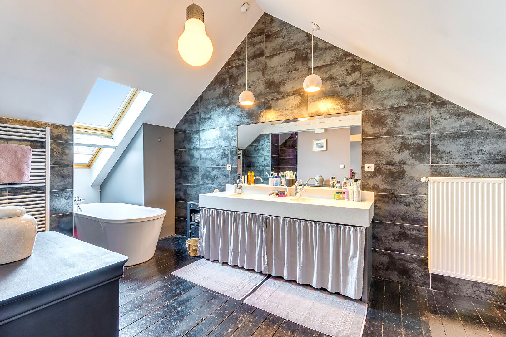 Le dernier étage offre quant à lui une suite parentale d'env. 35 m² au sol, et sa salle de bains intégrée.