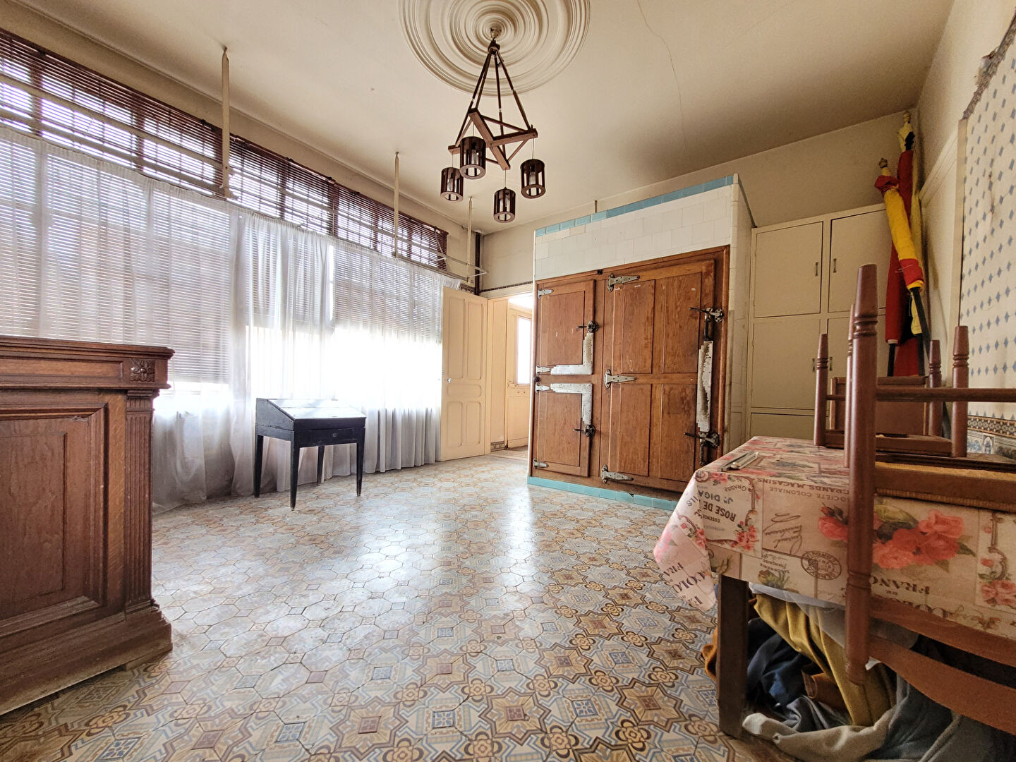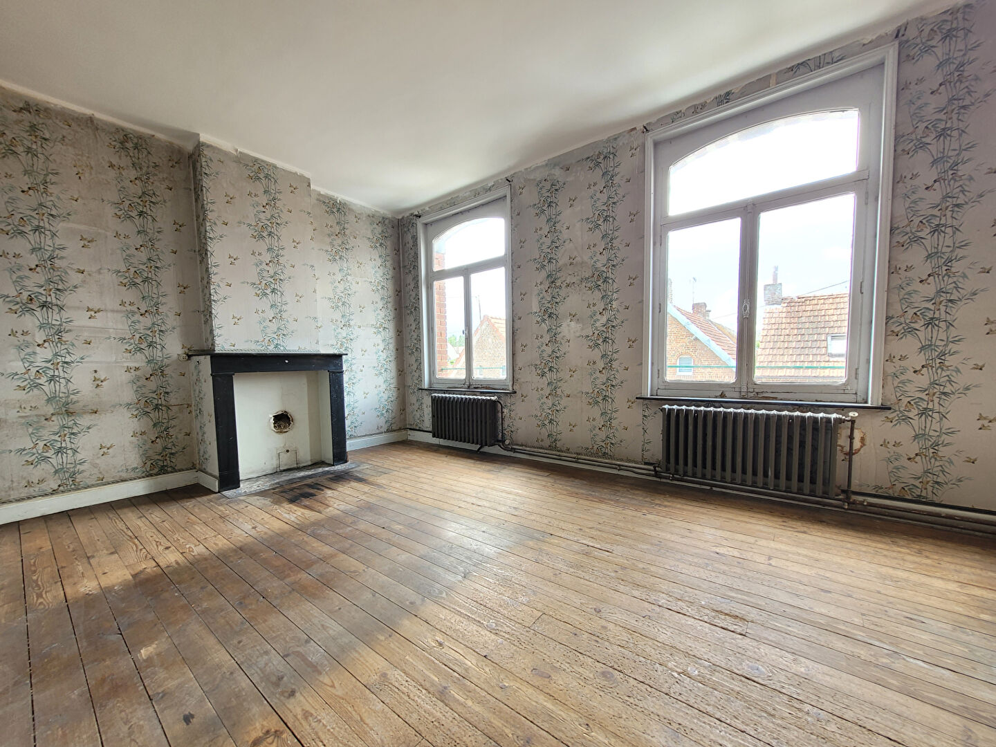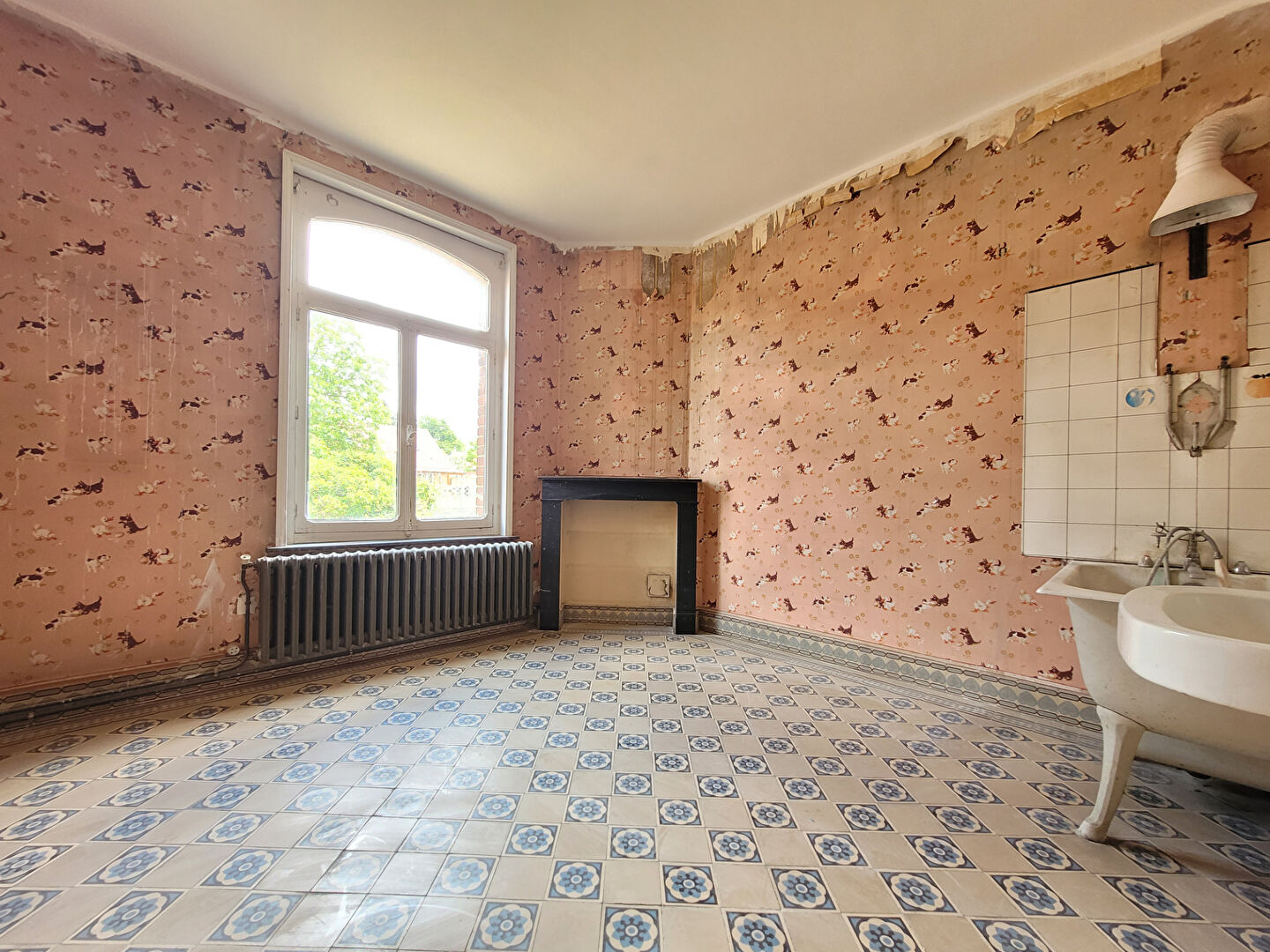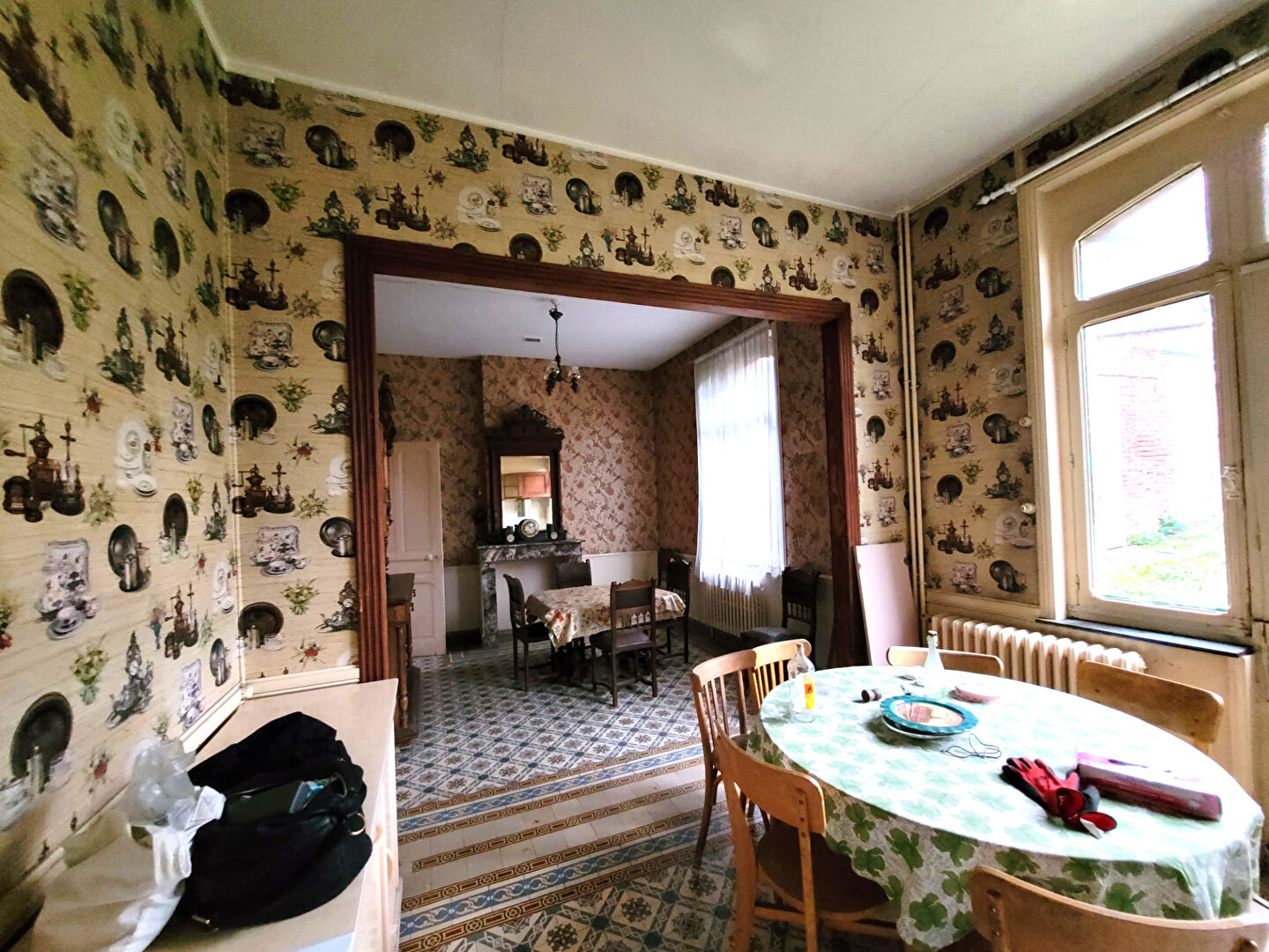 Maison de caractère à rénover, située à 5 minutes de Cambrai, comprenant une entrée, cuisine ouverte sur séjour, bureau, salon, buanderie, w-c.