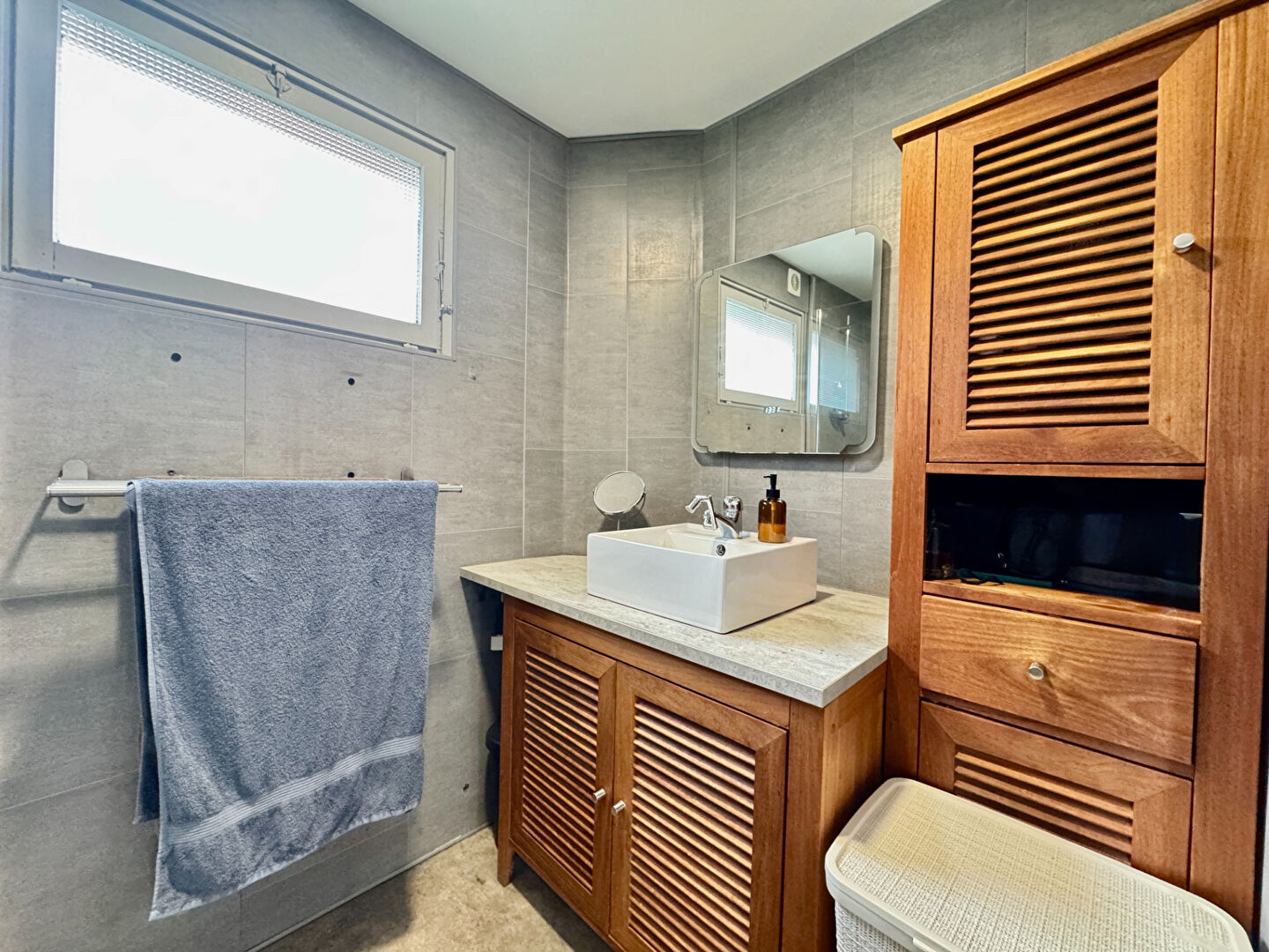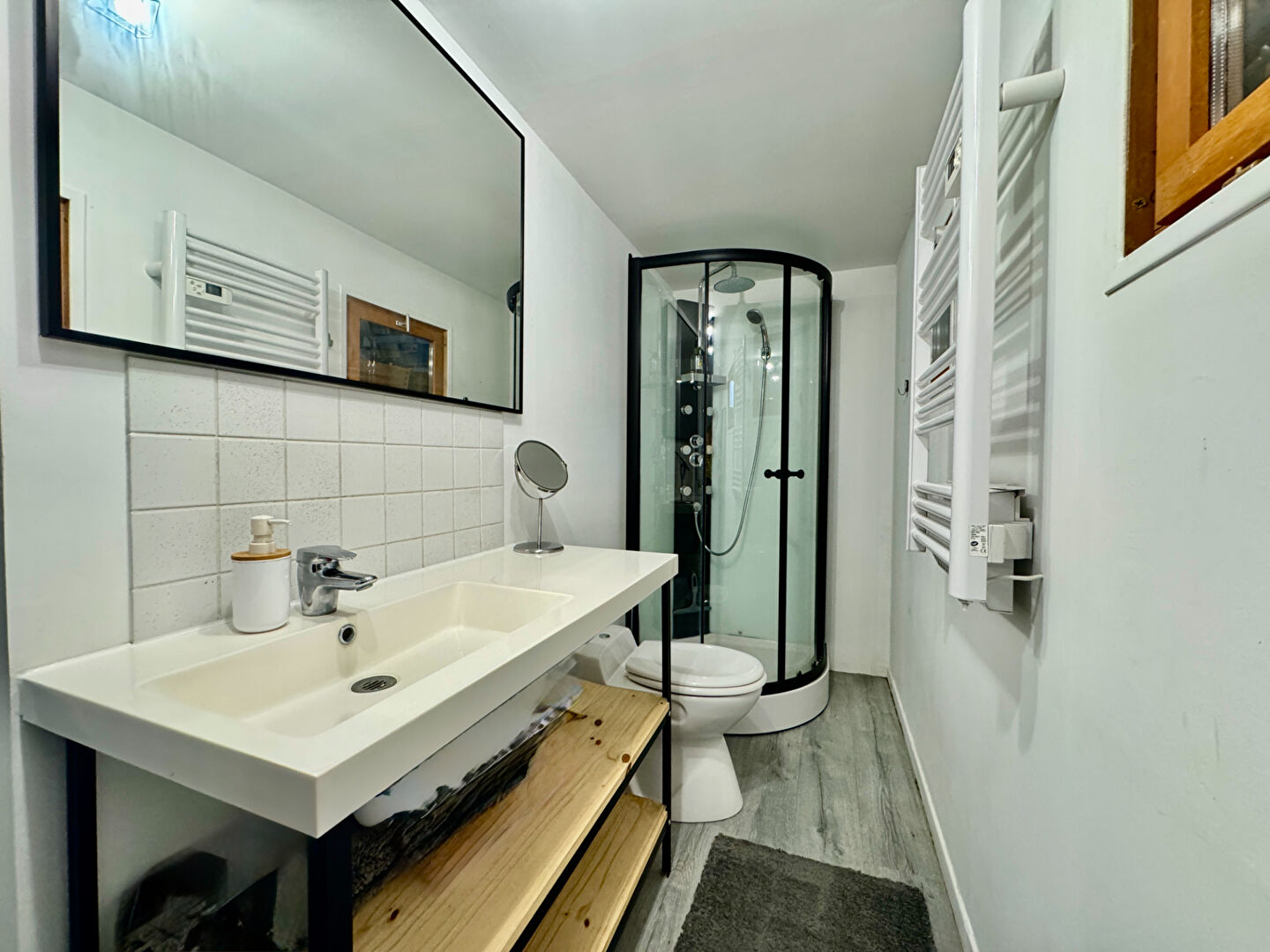 Elle se compose: d'un salon séjour lumineux, une chambre avec sa salle de douche au rez-de-chaussée, une cuisine aménagée et équipée, une salle de douche, un wc.