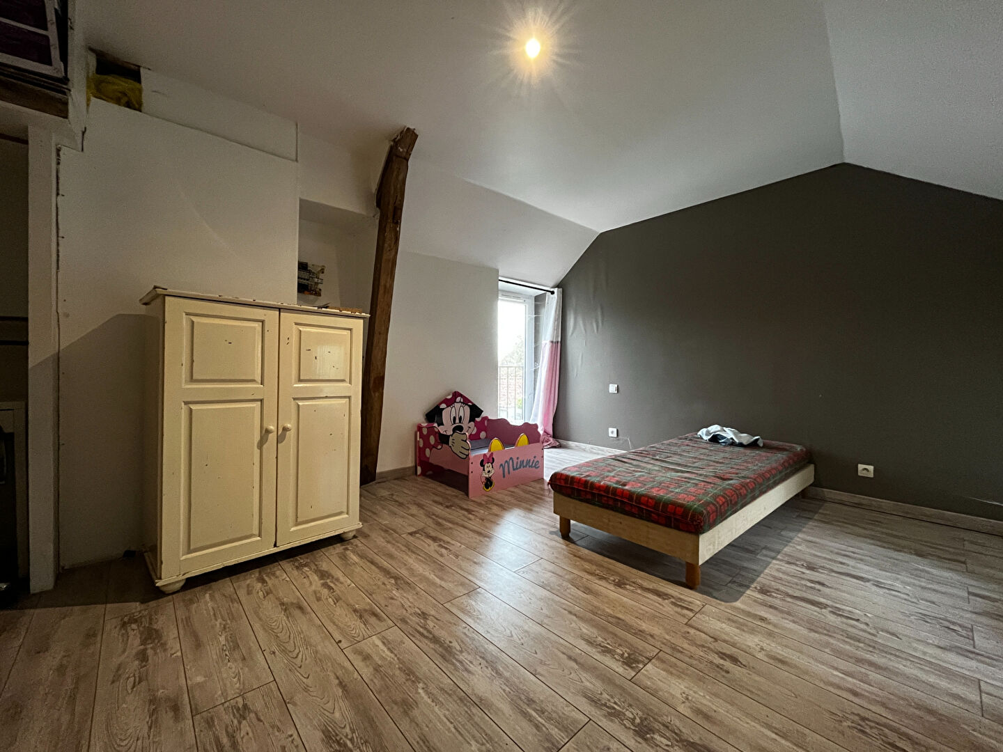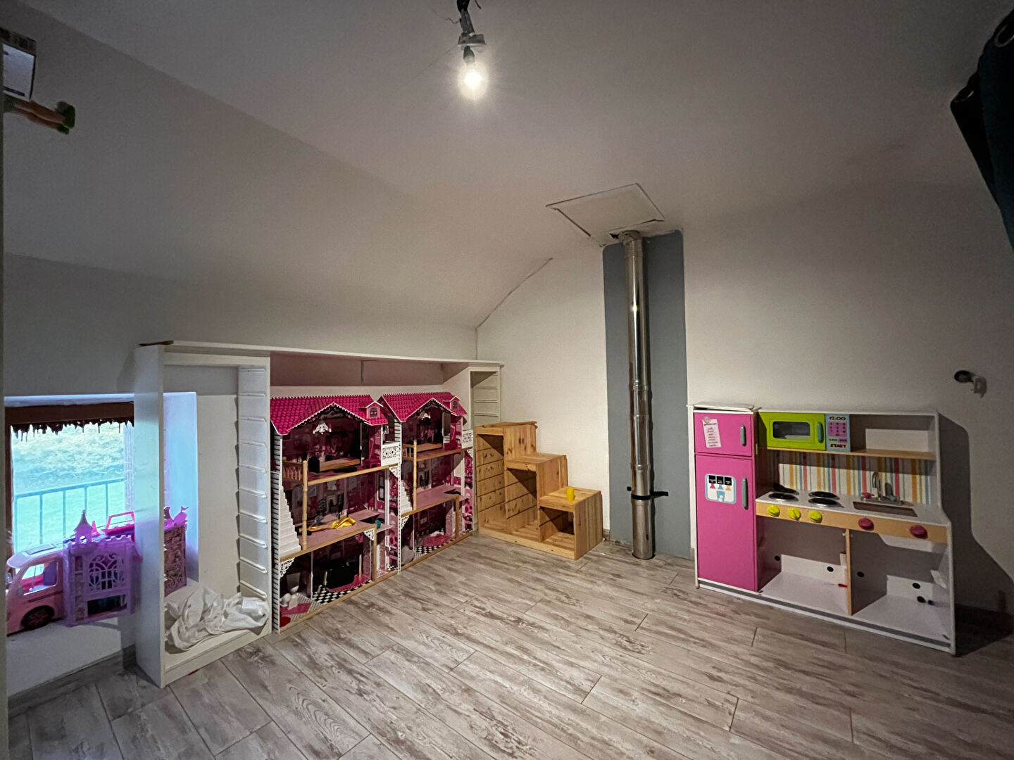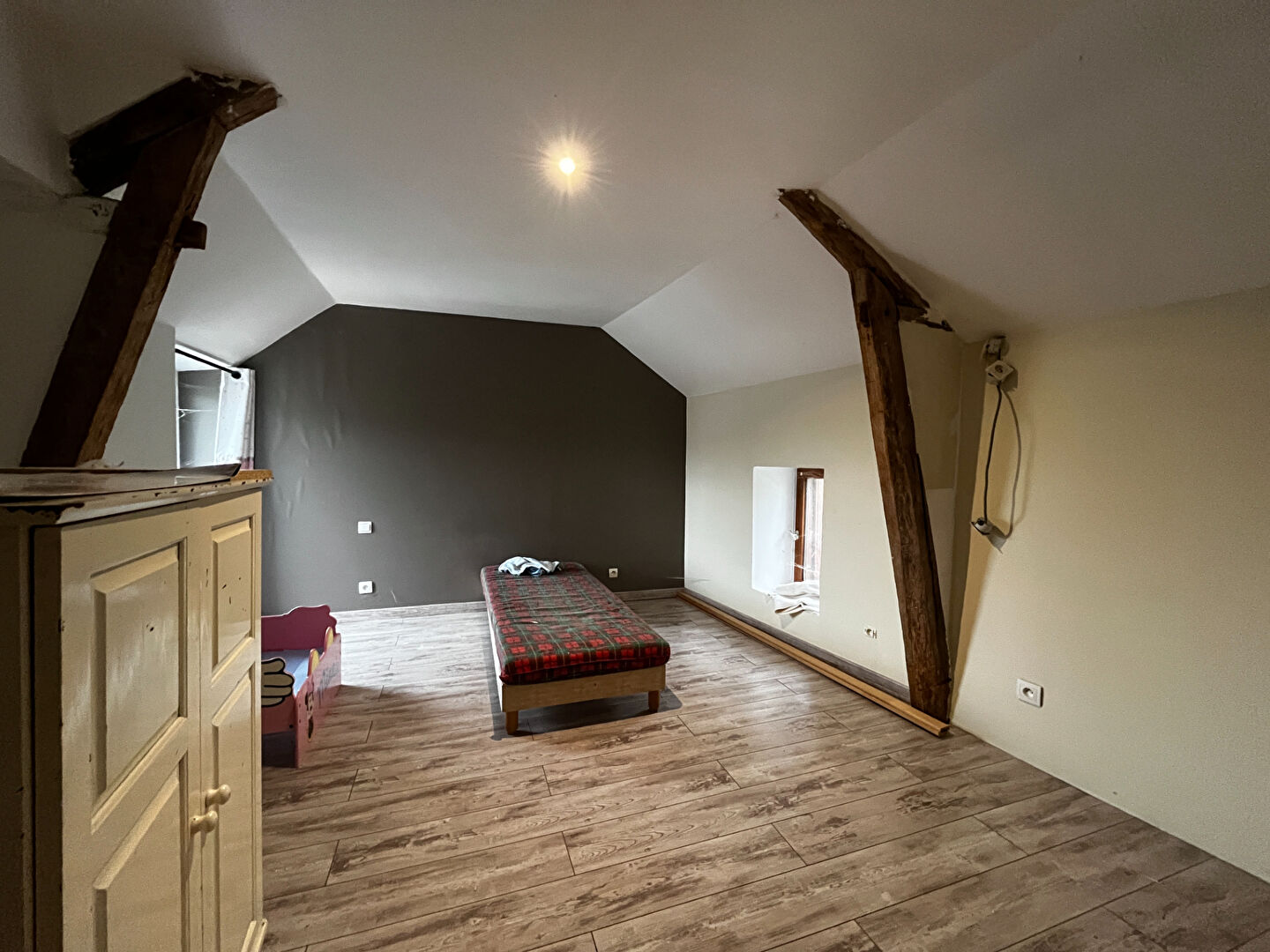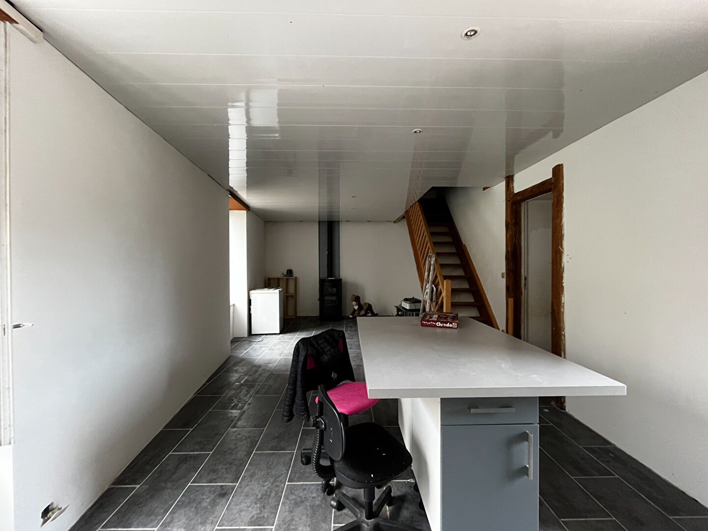 Le rez-de-chaussée propose un espace de vie chaleureux comprenant une cuisine ouverte sur le séjour d'environ 30 m², agrémenté d'un performant poêle à granulés, deux chambres et une salle d'eau à rénover, vous permettant de la personnaliser à votre goût. À l'étage, vous trouverez une mezzanine lumineuse, parfaite pour un bureau ou un coin détente, ainsi qu'une grande chambre.