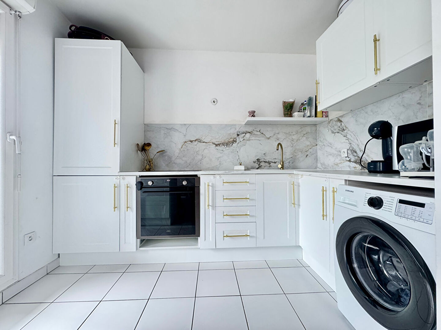 Une entrée desservant la salle de bains, la chambre et le wc, une belle pièce de vie lumineuse, une jolie cuisine aménagée et équipée donnant accès à un balcon.