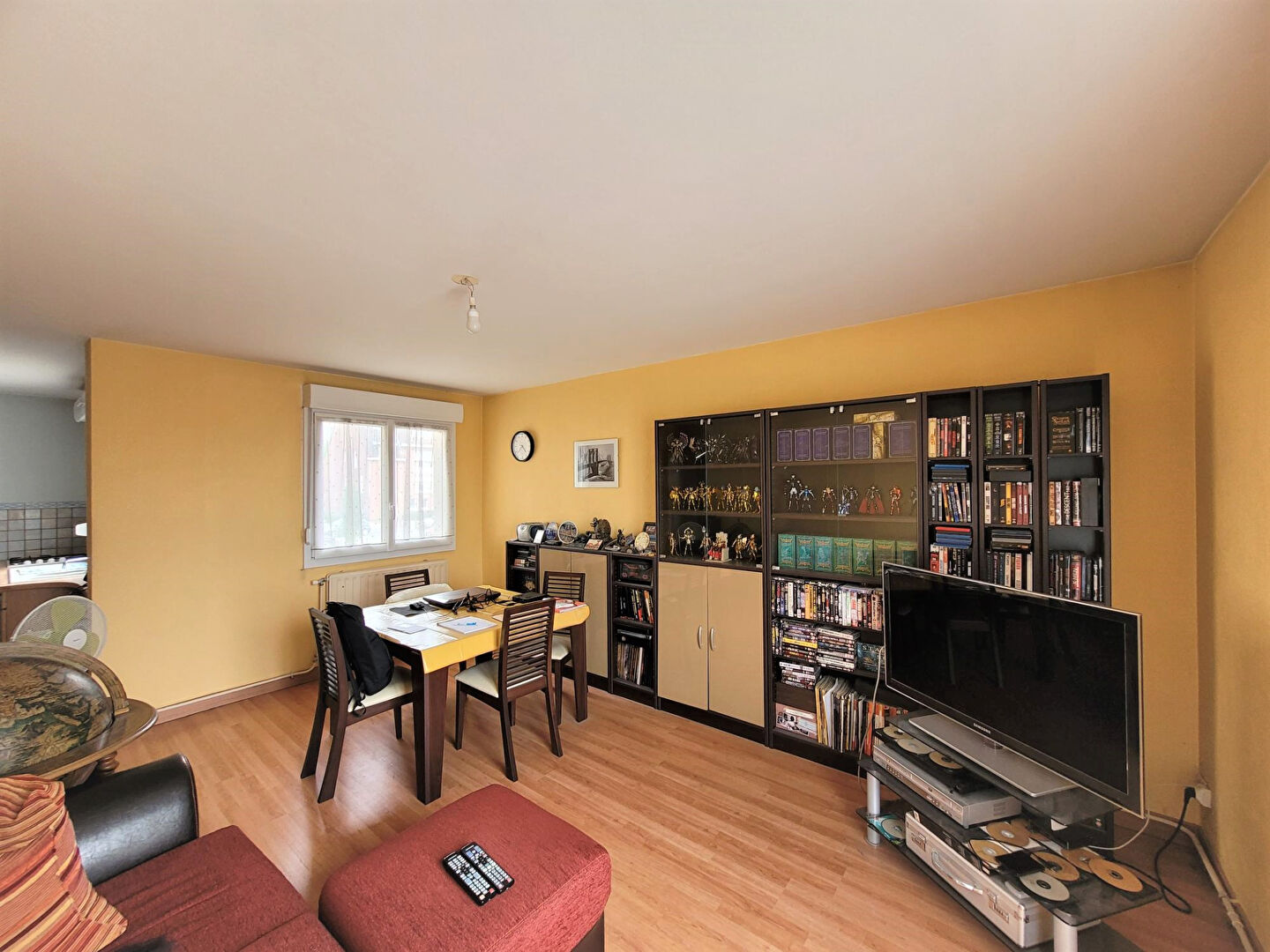 Cet appartement est composé d'un hall, une cuisine équipée semi-ouverte sur un séjour, deux chambres, salle d'eau, buanderie, wc, un garage. chauffage central gaz, double vitrage PVC, charges de copropriété 90Euro/mois env. Vendu loué 530Euro/mois .