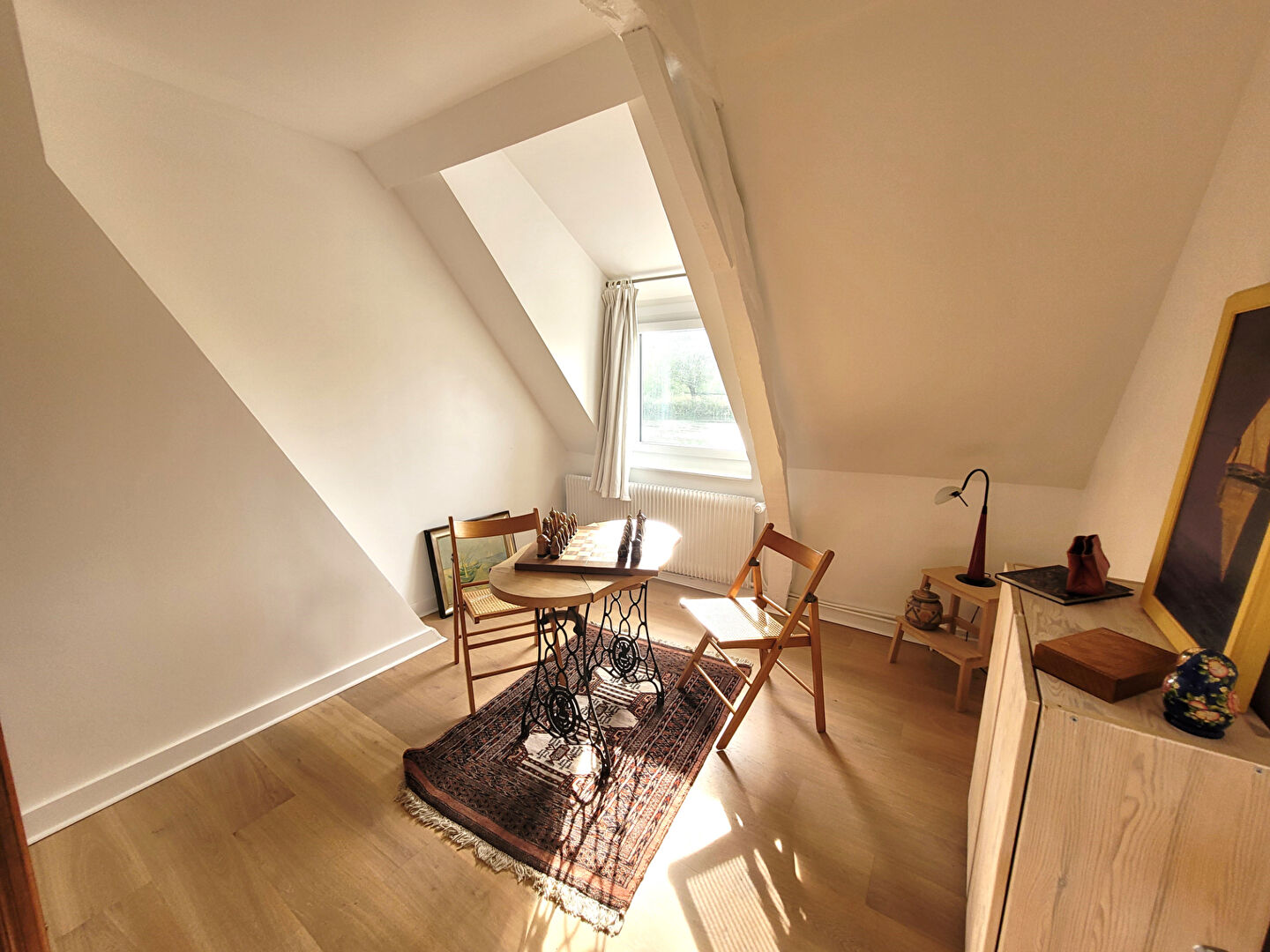A l'étage, 2 chambres et 1 bureau parquetés.