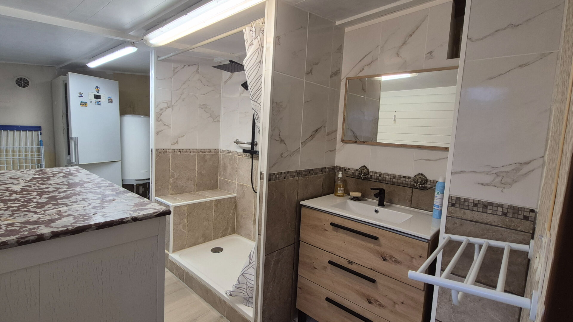 Au rez-de-chaussée, vous trouverez un vaste double séjour idéal pour recevoir, une cuisine baignée de lumière, une buanderie pratique ainsi qu'une salle de douche fonctionnelle.