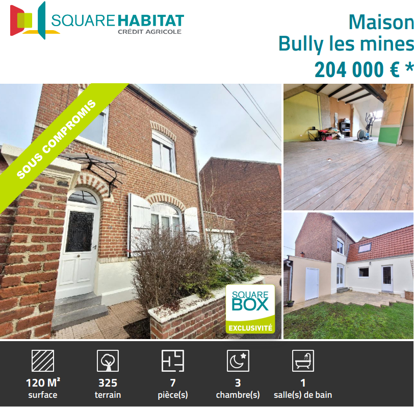SQUARE HABITAT Liévin vous propose Maison Rénovée 3 Grandes chambres + GRENIER + Garage + Cave Au rez-de-chaussée elle se compose d'un vaste hall d'entrée un salon/séjour avec accès au jardin, la cuisine équipée et une arrière cuisine pouvant servir de buanderie et WC indépendant. A l'étage, vous découvrirez 3 belles chambres avec espace dressing pour chacune et salle de douche italienne. Un grenier de 40m² au sol aménageable, une cave saine, Côté extérieur : Un jardin entièrement clos avec passage sur le côté, un Garage avec porte motorisé, possibilité de créer un second Les informations sur les risques auxquels ce bien est exposé sont disponibles sur le site Géorisques : www. georisques.gouv.fr DPE : D TOUT A L'EGOUT