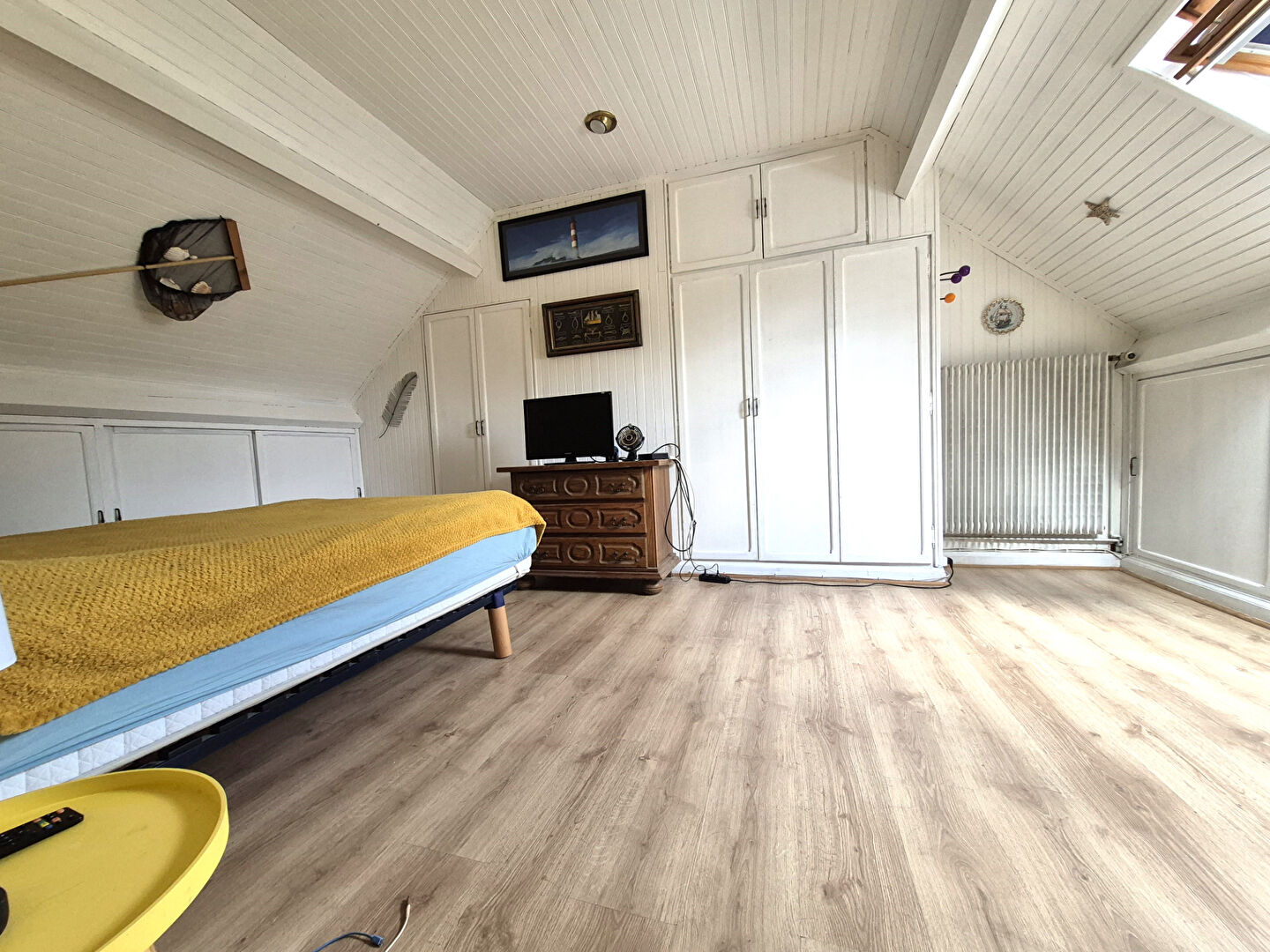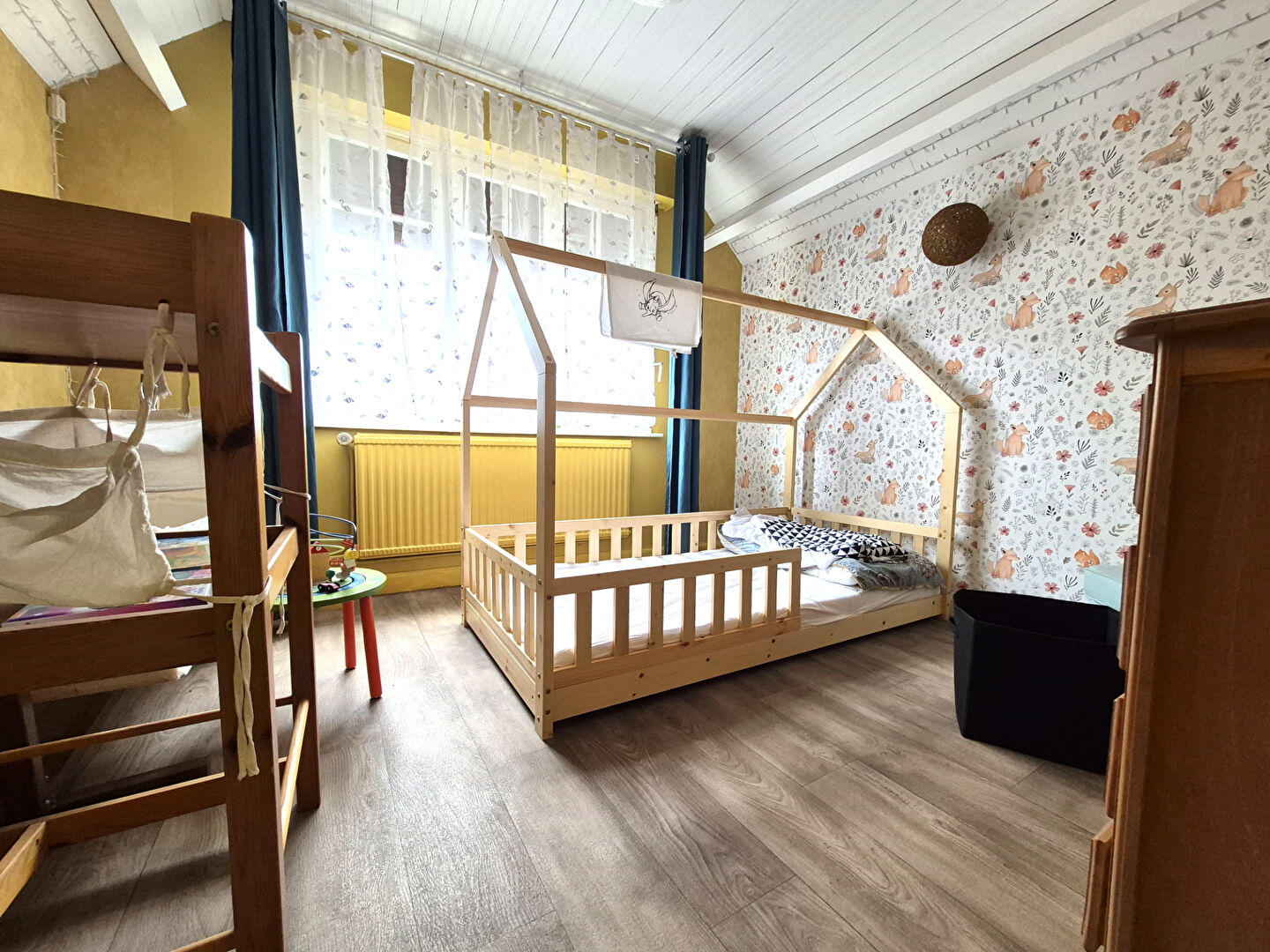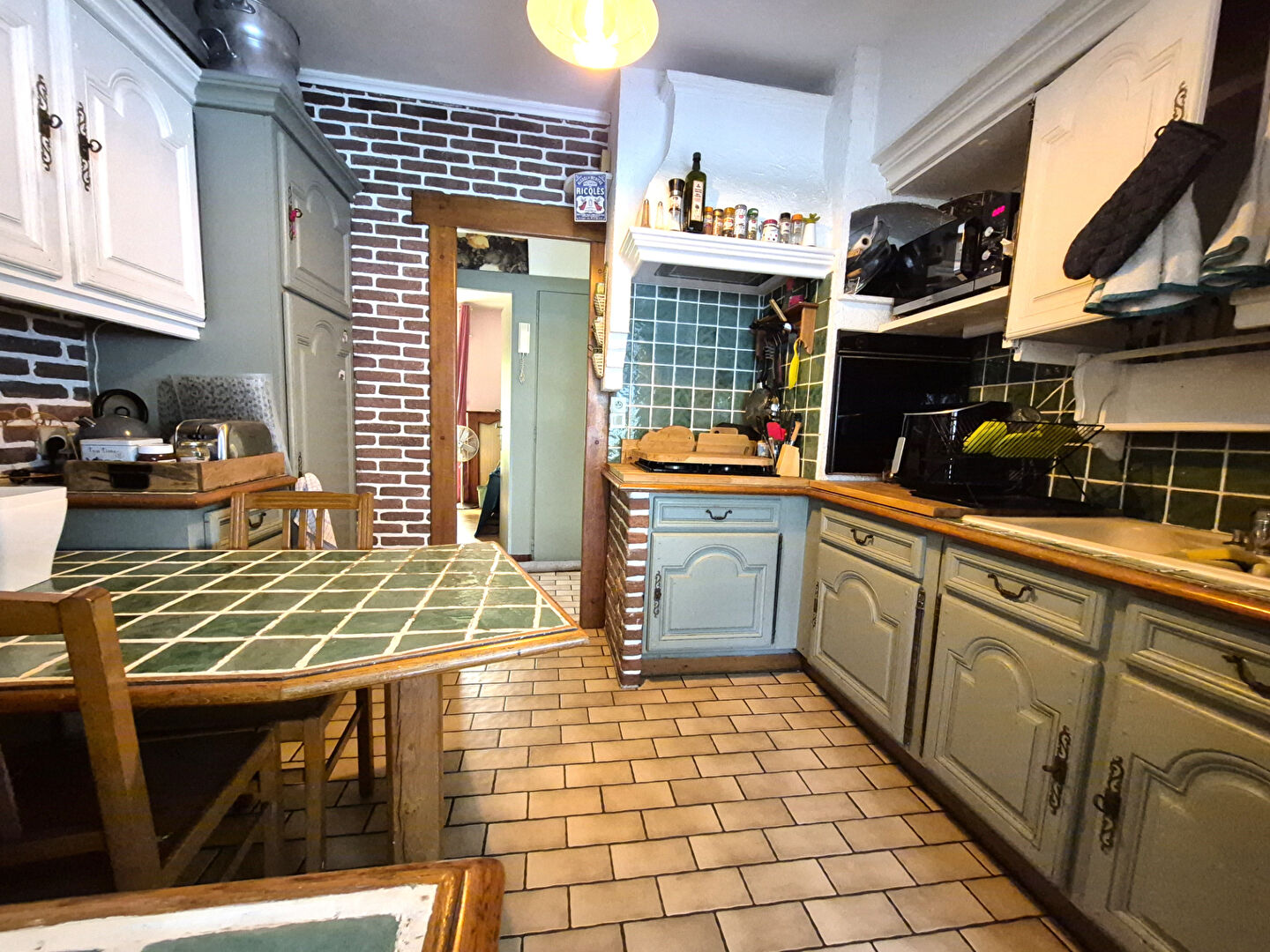 Maison d'environ 103m² comprenant une entrée-couloir, salon-séjour et cheminée feu de bois, une extension d'environ 25m² avec poêle à granule, cuisine équipée, une chambre, une salle de bains, w-c.