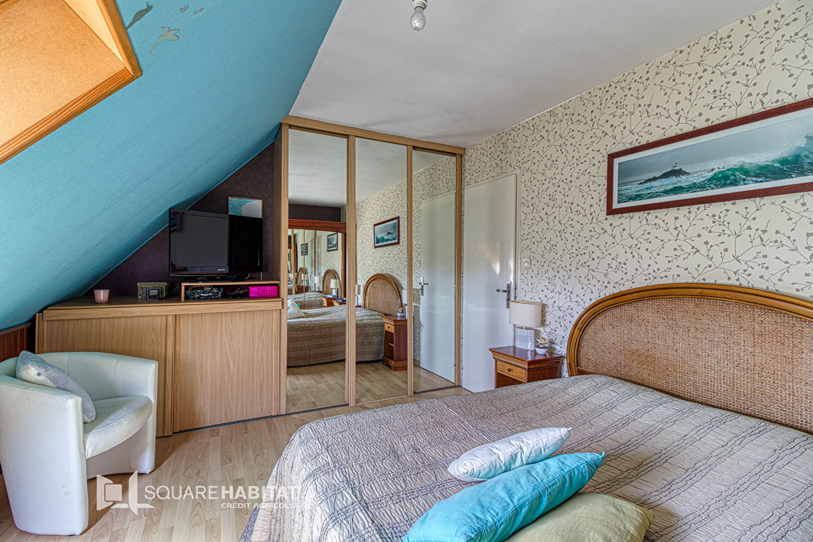 Composé d'une entrée, vaste séjour ouvert sur la cuisine aménagée et équipée, un wc et un garage. Au 1er étage, un pallier qui dessert 3 chambres et une salle de bains avec douche et baignoire. Les combles de 17m² ont été aménagées. Pour l'extérieur, un bel espace terrasse expo ouest, jardin de 200m² avec portail stationnement privé.