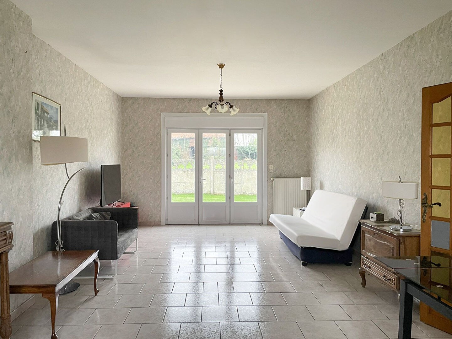 Il dispose d'un hall d'entrée / un grand salon séjour / cuisine / couloir / chambre / salle de bains et toilettes.