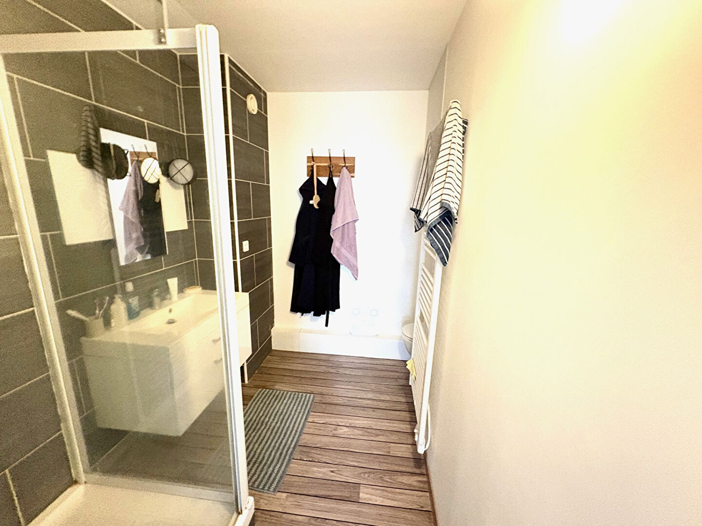 Au 2ème niveau, une chambre confortable au calme, une salle de bains, un espace bureau très lumineux, et une cave complète ce bien.