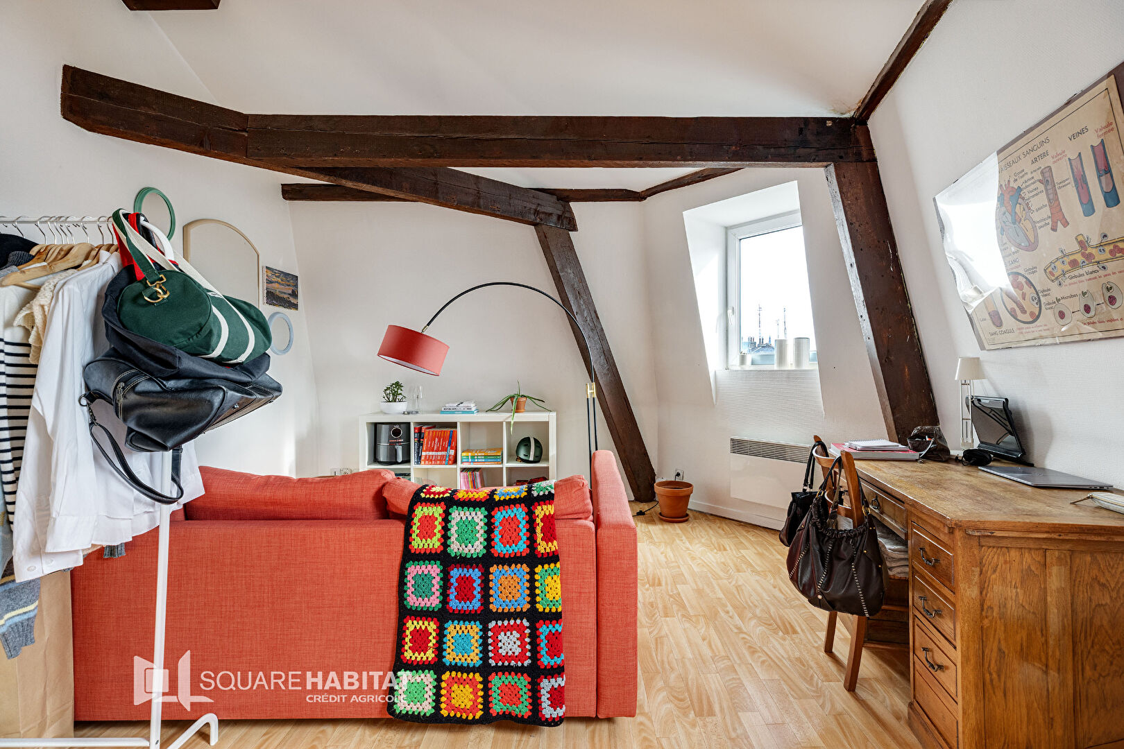 Dans une petite copropriété de 6 lots, ce T1 bis de 31,50 m² est composé d'une entrée, une belle pièce de vie avec cuisine ouverte et séjour de 20,95 m², une salle de bains et un espace bureau ou chambre de 6,69 m².