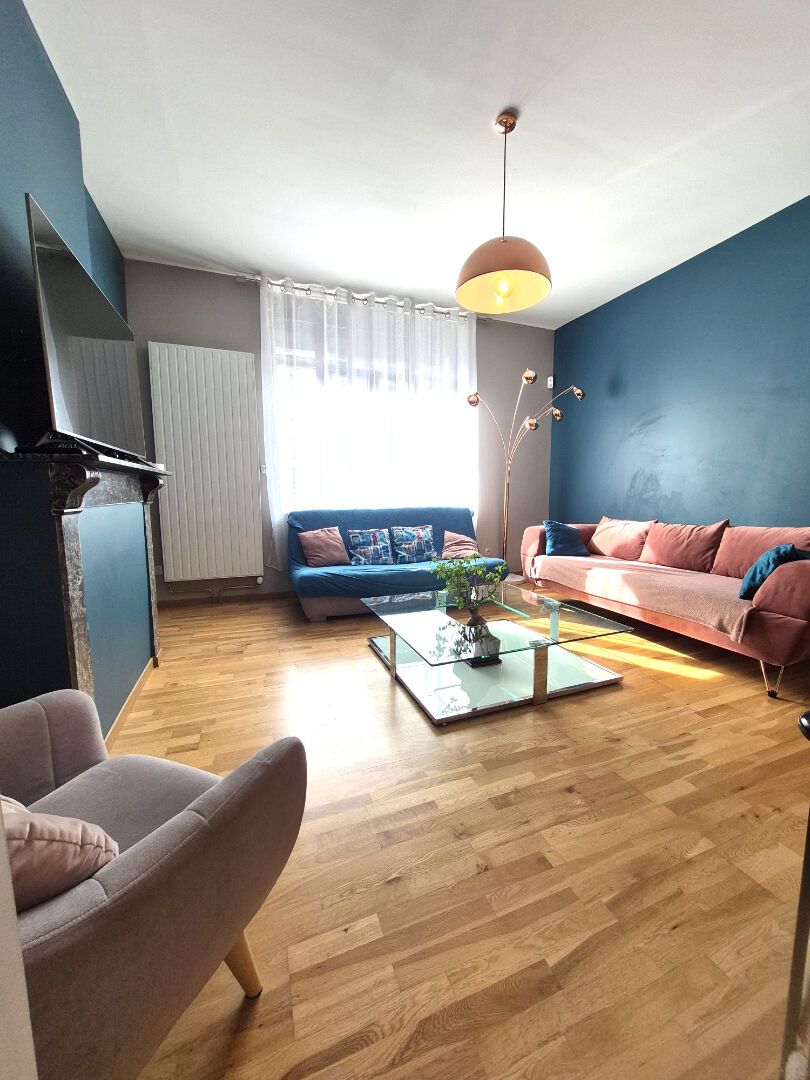 Sublime maison située à proximité de la porte de Paris comprenant un hall d'entrée, une cuisine équipée ouverte sur le salon-séjour avec son poêle à pellets, une grande chambre , une lingerie, un w-c.