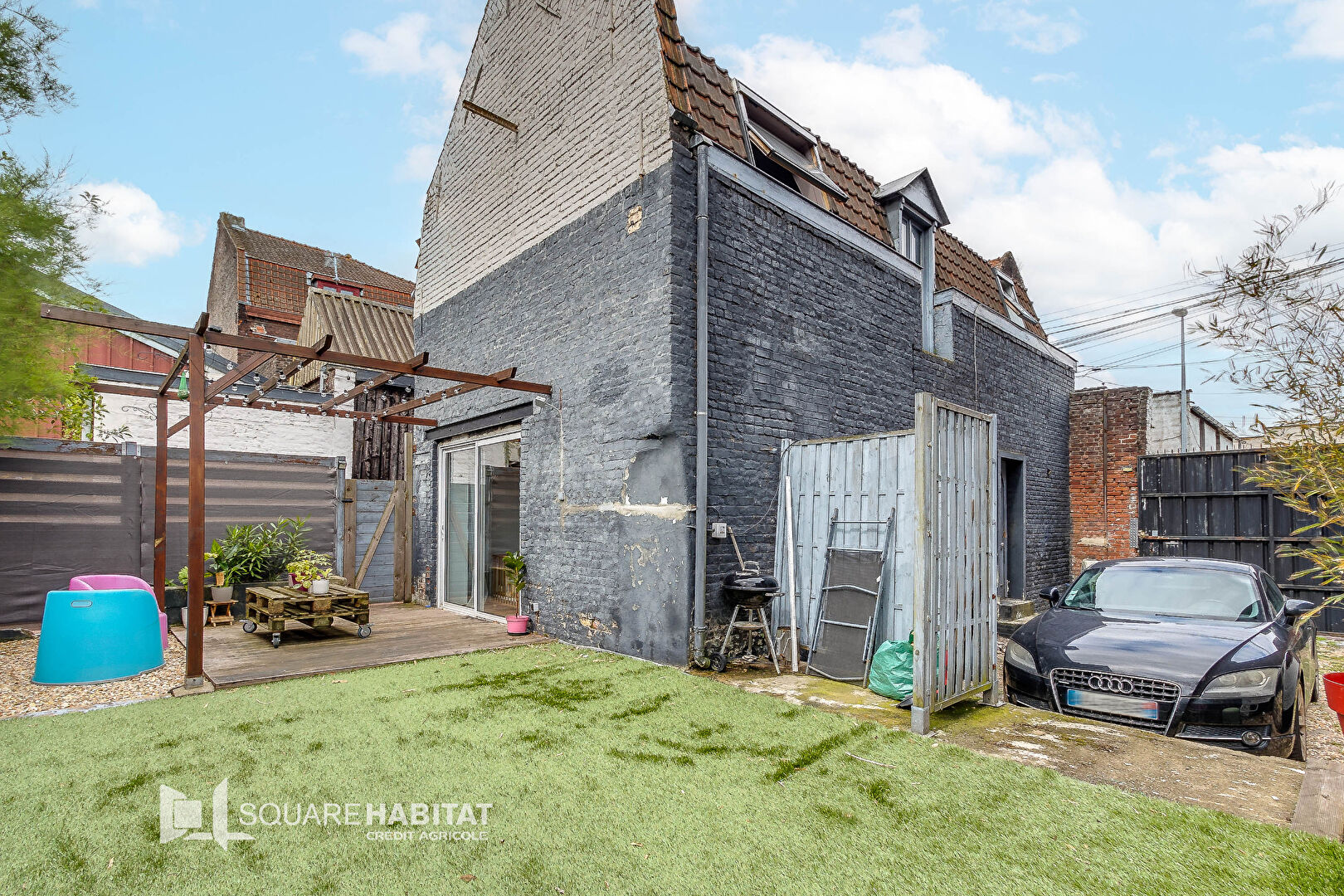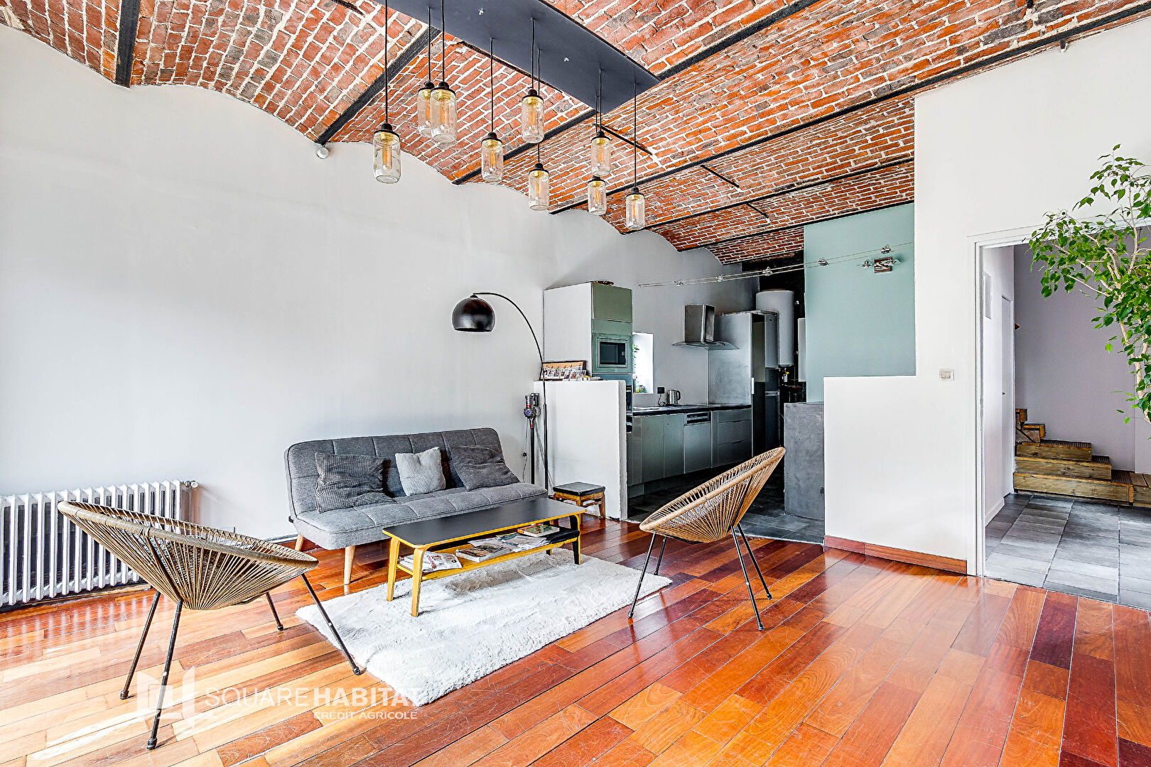 Une exception sur le marché : Square Habitat Tourcoing Roussel vous présente cette maison individuelle au cachet industriel et aux accents loft. Elle propose une entrée lumineuse où se trouve l'accès à l'étage et les WC, une pièce de vie parquetée au plafond voûté en briques, orientée vers la grande terrasse d'environ 50 m², une cuisine équipée avec coin repas ; à l'étage elle dispose d'une salle de bains, d'une chambre de 11 m² et d'une chambre de 16 m² avec dressing. Les avantages : grande zone de stationnement privatif, aucun vis-à-vis. Une superbe opportunité ! Les informations sur les risques auxquels ce bien est exposé sont disponibles sur le site Géorisques : www. georisques.gouv.fr