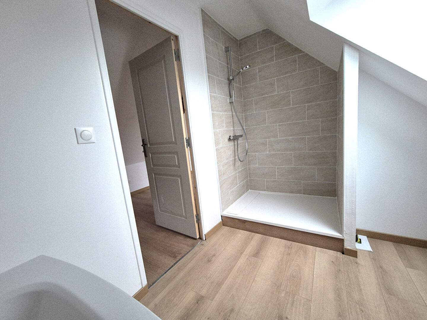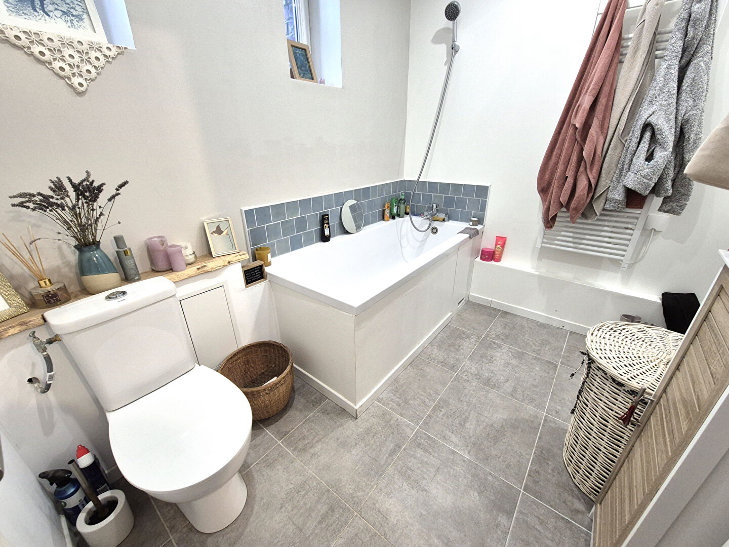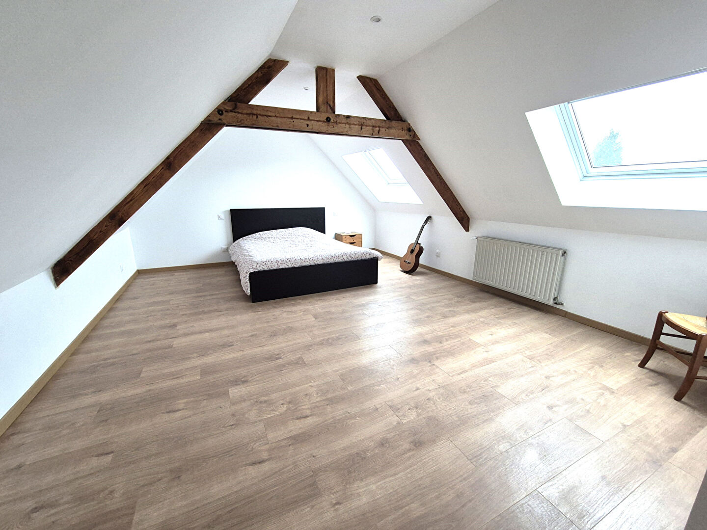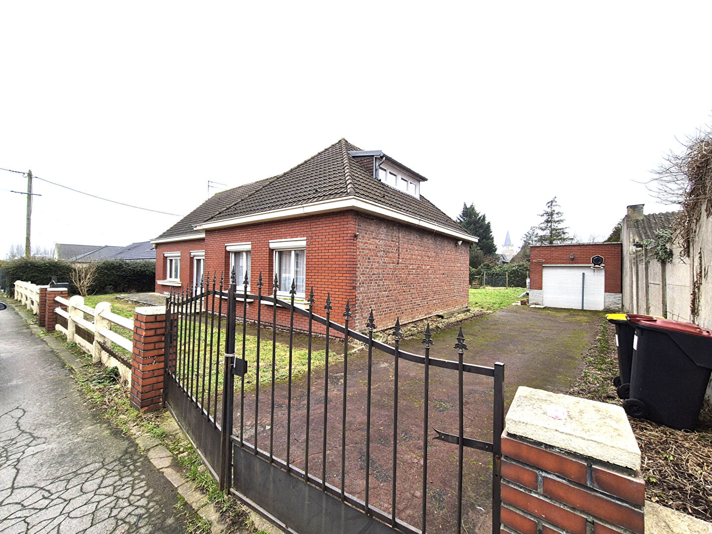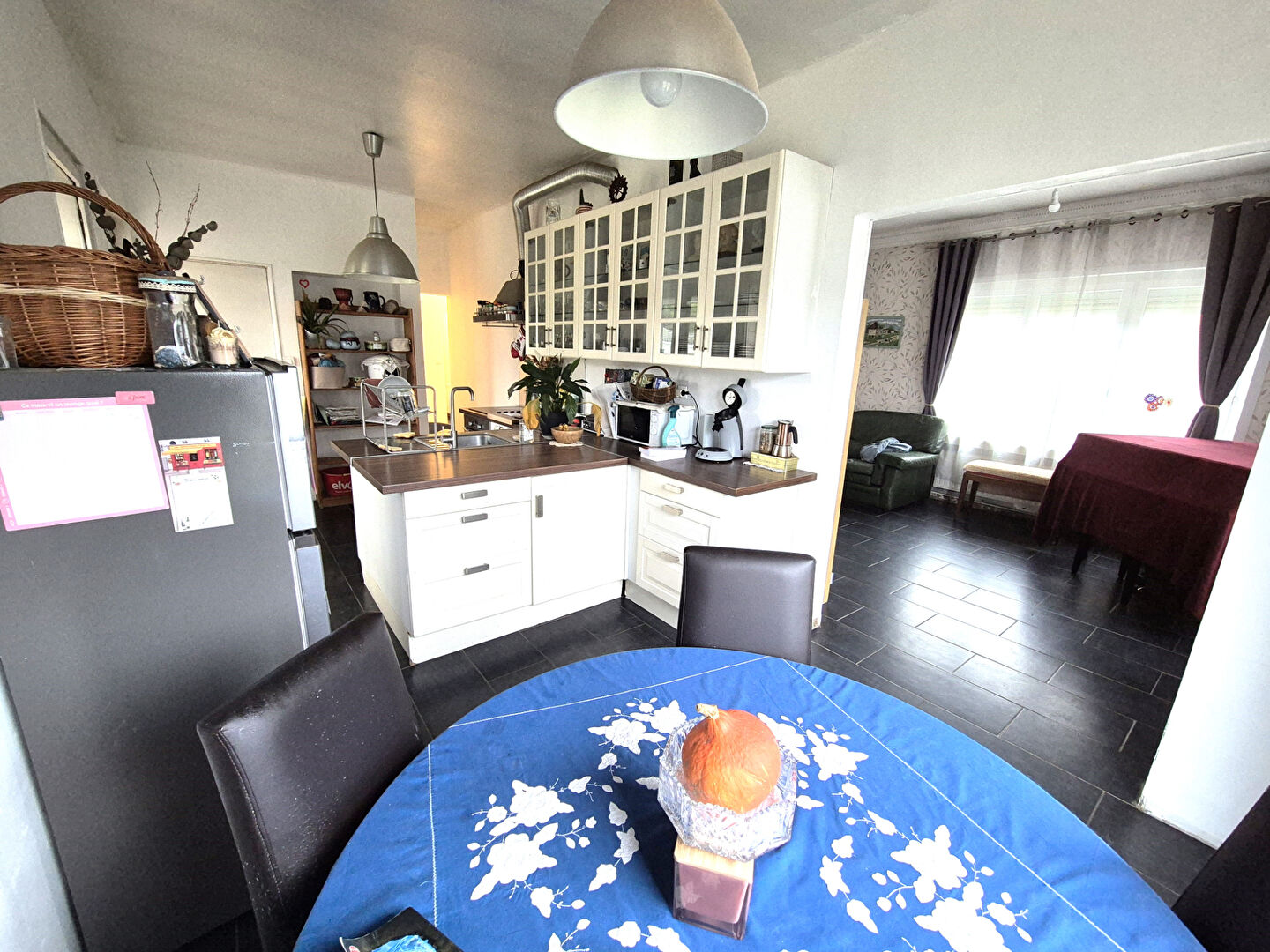 Située en secteur calme et proche de toutes commodités, semi plain-pied rénové en briques des années 60 bâti sur une parcelle de 929m² et composé au rez-de-chaussée d'un vaste séjour, d'une cuisine équipée, d'une salle de bains ainsi que 3 grandes chambres. À l'étage un palier de 11m² faisant office de bureau, une salle de douche ainsi qu'une chambre de plus de 12m². Jardin, garage de 40m² avec stationnement privé 2-3 véhicules. Double vitrage, chauffage gaz avec chaudière de 2023, maison reliée au TAE.