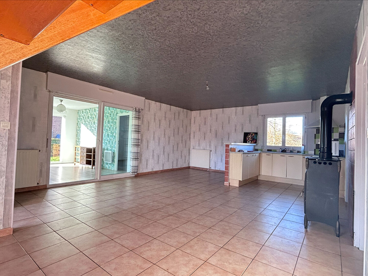 Cette construction de semi plain pied, dispose d'un beau salon séjour ouvert sur la cuisine, d'une chambre, d'une salle d'eau et d'un bel espace "véranda".