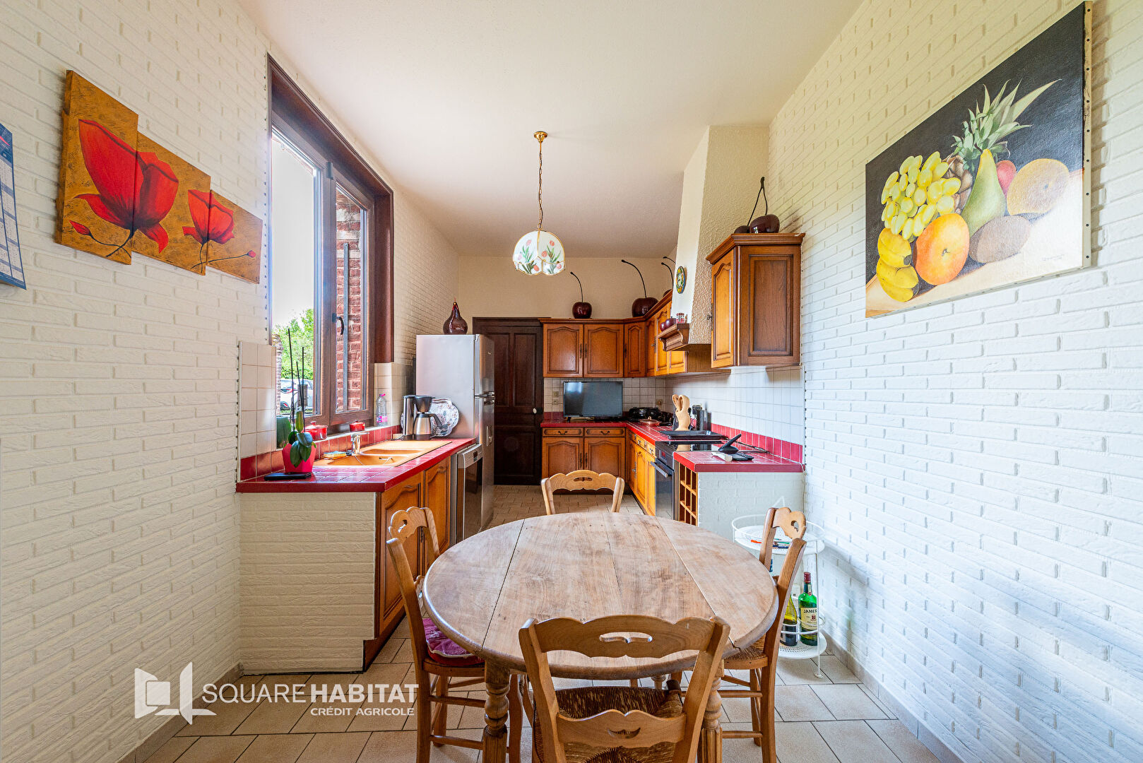 CAMBRAI même, maison de style bourgeoise construite sur un beau terrain arboré. Intérieur offrant belle entrée, salon, salle à manger, cuisine, cellier et salle de bain en RDC. Étage: palier distribuant 3 chambres , un WC et un bureau. Deuxième étage aménagé en 2 chambres supplémentaires. CC GAZ et cheminée, cave, terrasse, Deux garages car-port. Jardin clos sur 1400M2. Espace terrain supplémentaire de 3000M2 à intégrer ou non à l'acquisition. A visiter!