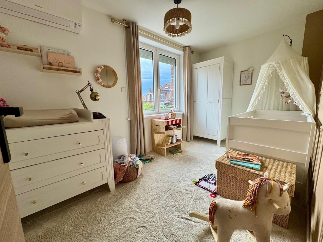 À l'étage, un palier dessert trois grandes chambres sur le même palier avec rangements intégrés ainsi qu'une salle de douche familiale, douche italienne et double vasque. Pour compléter ce bien : Grande cave, garage et parking
