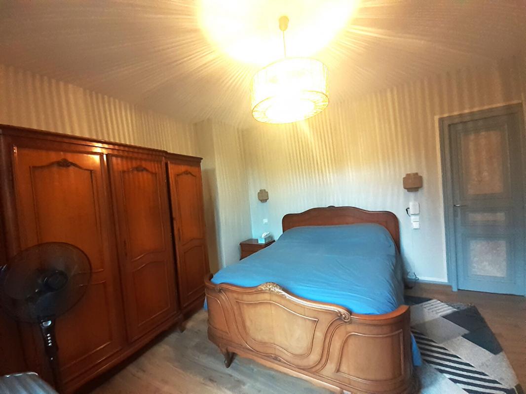 Une maison de Maitre comprenant au rez-de-chaussée, une entrée, une cuisine aménagée et équipée, une salle de bains, un couloir avec placards, un wc indépendant, un séjour avec cheminée. Au 1er étage, un palier desservant deux chambres d'environ 10 m² chacune, une chambre de 15 m² et une salle d'eau/wc. Au dernier étage, possibilité de faire un palier et deux grandes chambres. Cave de 20 m².