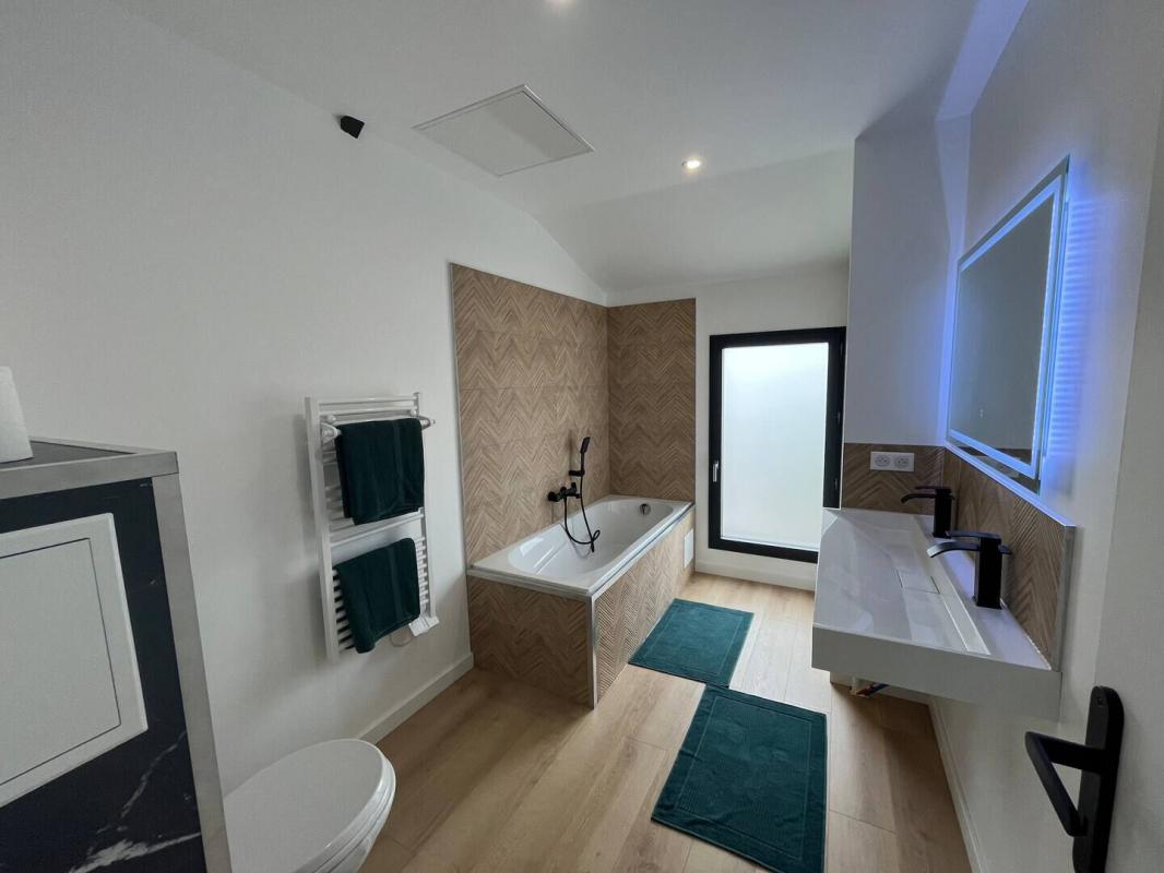 Vous serez séduit par une vaste pièce de vie de plus de 60m² avec cuisine ouverte, offrant une vue dégagée sur la terrasse, le jardin et la piscine exposés à l'ouest. A l'étage, une salle de bains avec WC, trois chambres dont une suite parentale spacieuse de plus de 25m² avec salle d'eau et dressing.