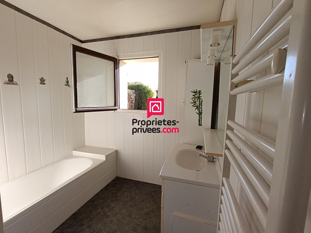 A l'intérieur, l'entrée dessert une belle cuisine indépendante meublée et équipée, un salon et séjour traversant baigné de lumière, agrémenté d'un poêle à bois, un couloir qui distribue deux belles chambres lumineuses de plus de 11 m2 chacune, une salle de bain avec baignoire, lavabo, sèche serviette et un WC séparé.