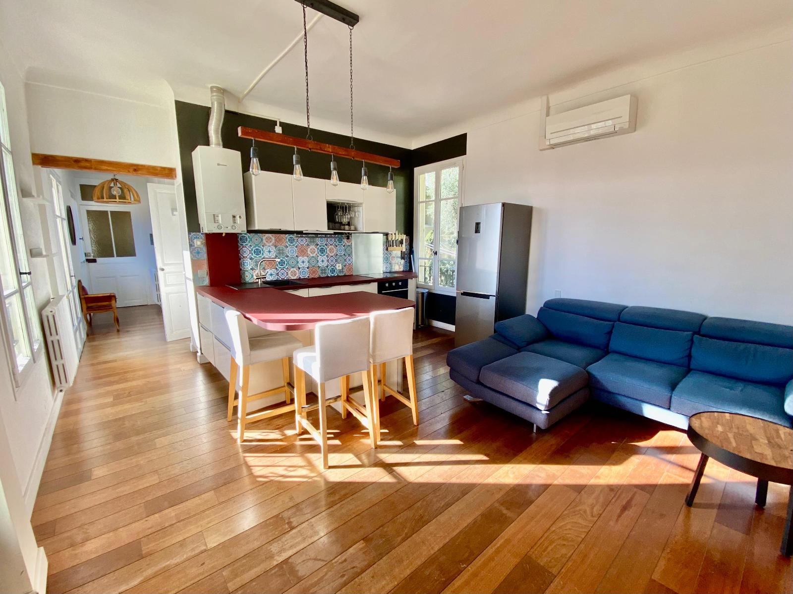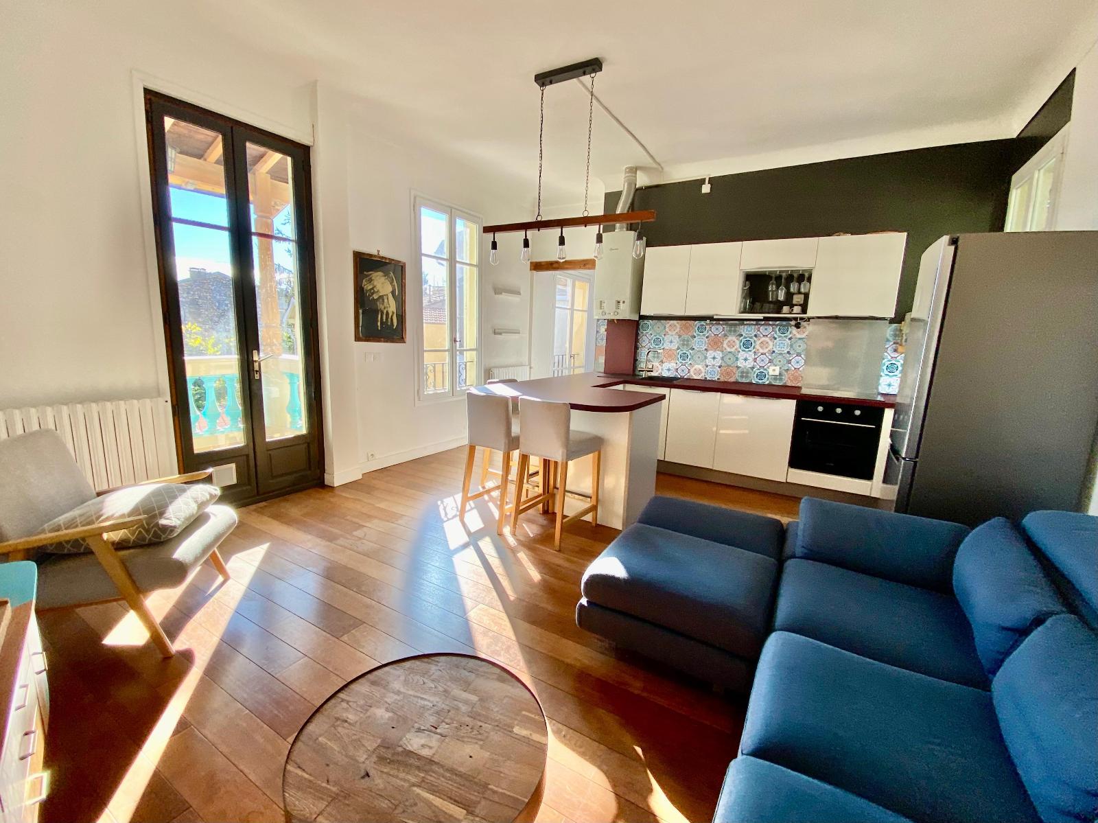 En dernier étage d'une maison sur le secteur MANTEGA RIGHI, un appartement climatisé en très bon état de type 3 pièces de 52,62m² loi Carrez (57m² habitables), composé d'une entrée, d'une cuisine équipée ouverte sur le séjour de 24m² avec un accès à un balcon avec une très belle vue dégagée sur la ville, de deux chambres dont une avec une salle d'eau avec WC.