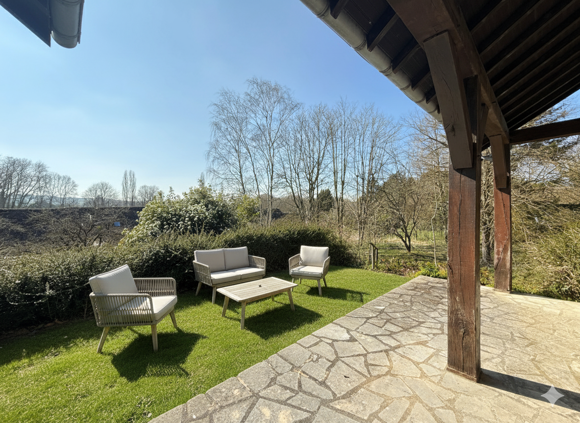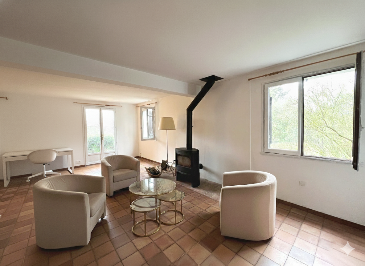 Terrasse exposée sud dominant le jardin avec vue sur la campagne environnante Jardin clos entourant la maison avec arbres fruitiers, calme complet, en position dominante sur le village. Commerces et école à 10 minutes. DPE en D - Consommation énergétique entre 2320 Euros et 3200 Euros pour l'année 2024 Les informations sur les risques auxquels ce bien est exposé sont disponibles sur le site Géorisques : www.georisques.gouv.fr