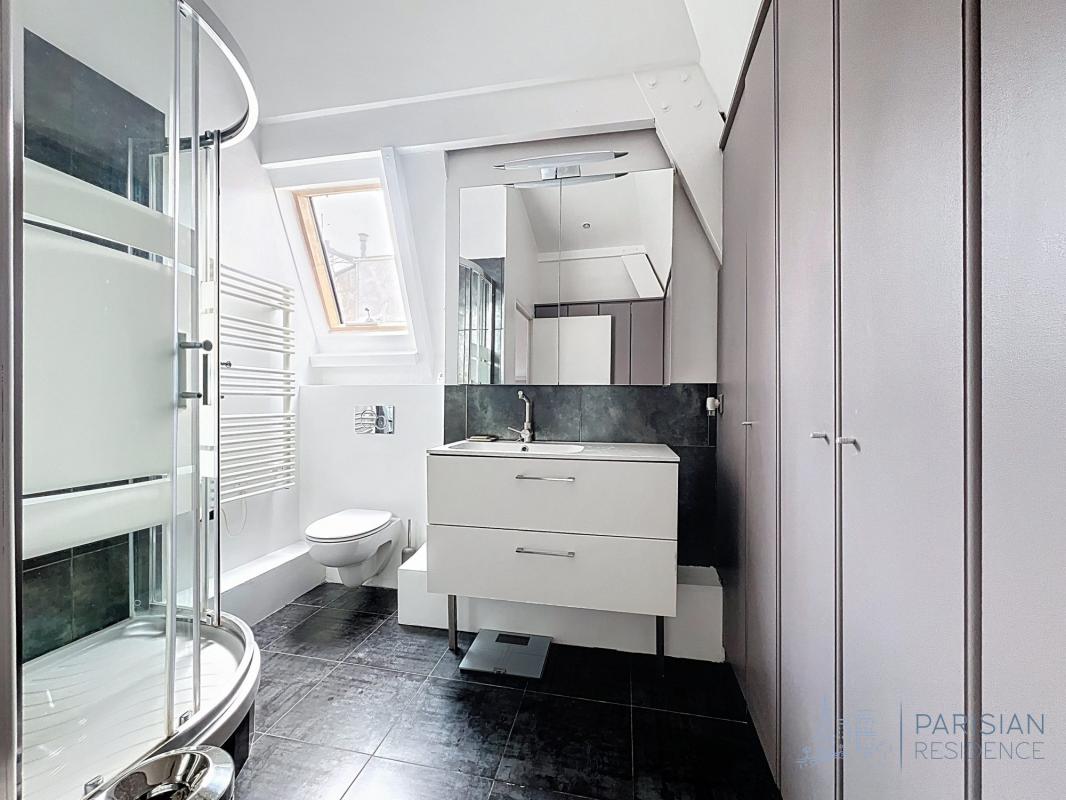 92200 Neuilly -Au 5ème et dernier étage (Ascenseur jusqu'au 4 ème puis escalier du 4 ème au 5 eme étage) un appartement de 48.06 m² loi Carrez , offrant une entrée avec cuisine, un vaste séjour climatisé sous une magnifique verrière d'atelier recemment changée, une chambre, une salle de douche avec toilettes et des espaces de rangement bien pensés. Volet roulant electrique.