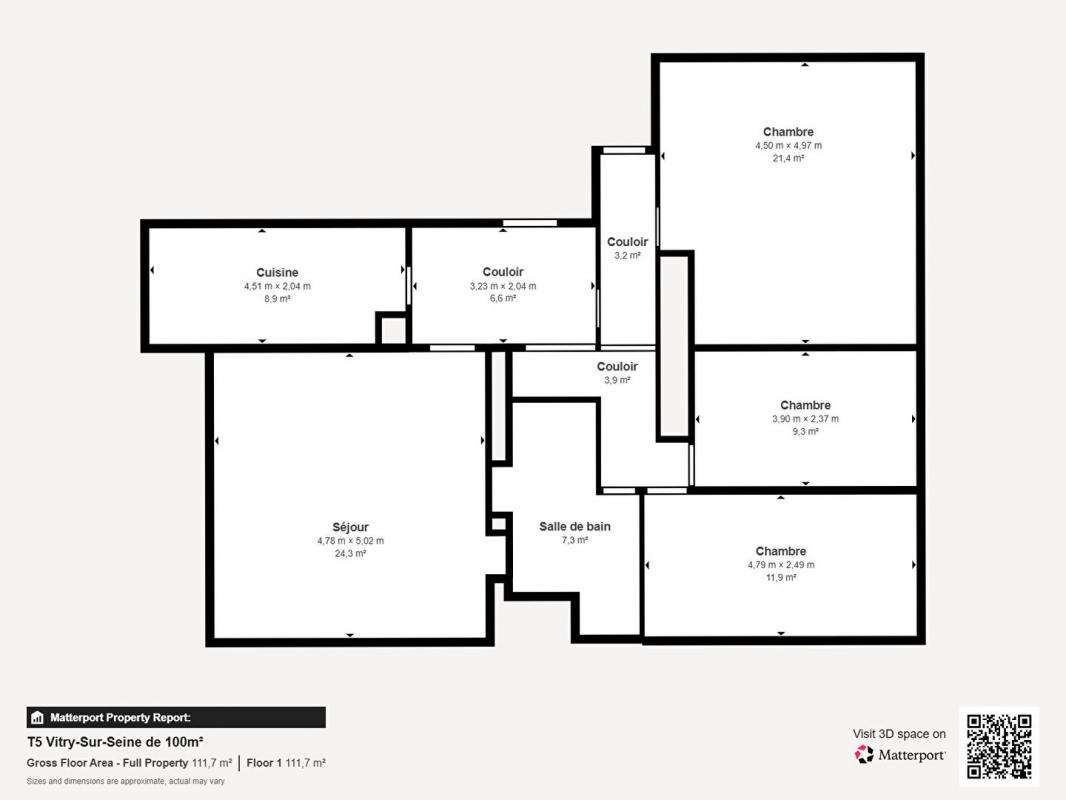 Marie Sorin Defresnes - Limitrophe Ivry-Sur-Seine, Jessy VALENTIN vous propose au 13e et dernier étage avec ascenseur, un appartement familial de 100 m² avec vue panoramique, dans une résidence idéalement placée. Au pied du T9(Beethoven-concorde), cet appartement raconte une belle histoire de famille. Dès l'entrée, de pratiques rangements donnent le ton d'un intérieur fonctionnel. La distribution, claire et logique, sépare naturellement les espaces jour et nuit : un séjour lumineux s'ouvre sur une loggia d'environ 6 m², véritable prolongement vers l'extérieur, tandis qu'une cuisine indépendante invite à la convivialité du quotidien. Côté nuit, trois chambres accueillent petits et grands, complétées par une salle de bains confortable avec douche supplémentaire, ainsi que des WC séparés pour plus de praticité. Prévoir une simple cloison pour la quatrième chambre !!! Sinon aucun gros travaux à prévoir : chauffage et eau chaude collectifs au gaz assurent confort et sérénité. Au sous-sol, deux places de stationnement sécurisées et boxables viennent parfaire l'ensemble, accompagnées d'une cave privative. L'exposition Sud-ouest offre de beaux couchers de soleil, et le Tram T9 (station Beethoven-Concorde) au pied de l'immeuble simplifie les déplacements vers Paris ou vers Orly. Un cadre de vie idéal pour une famille en quête d'espace, de calme et de praticité, aux portes de la capitale.