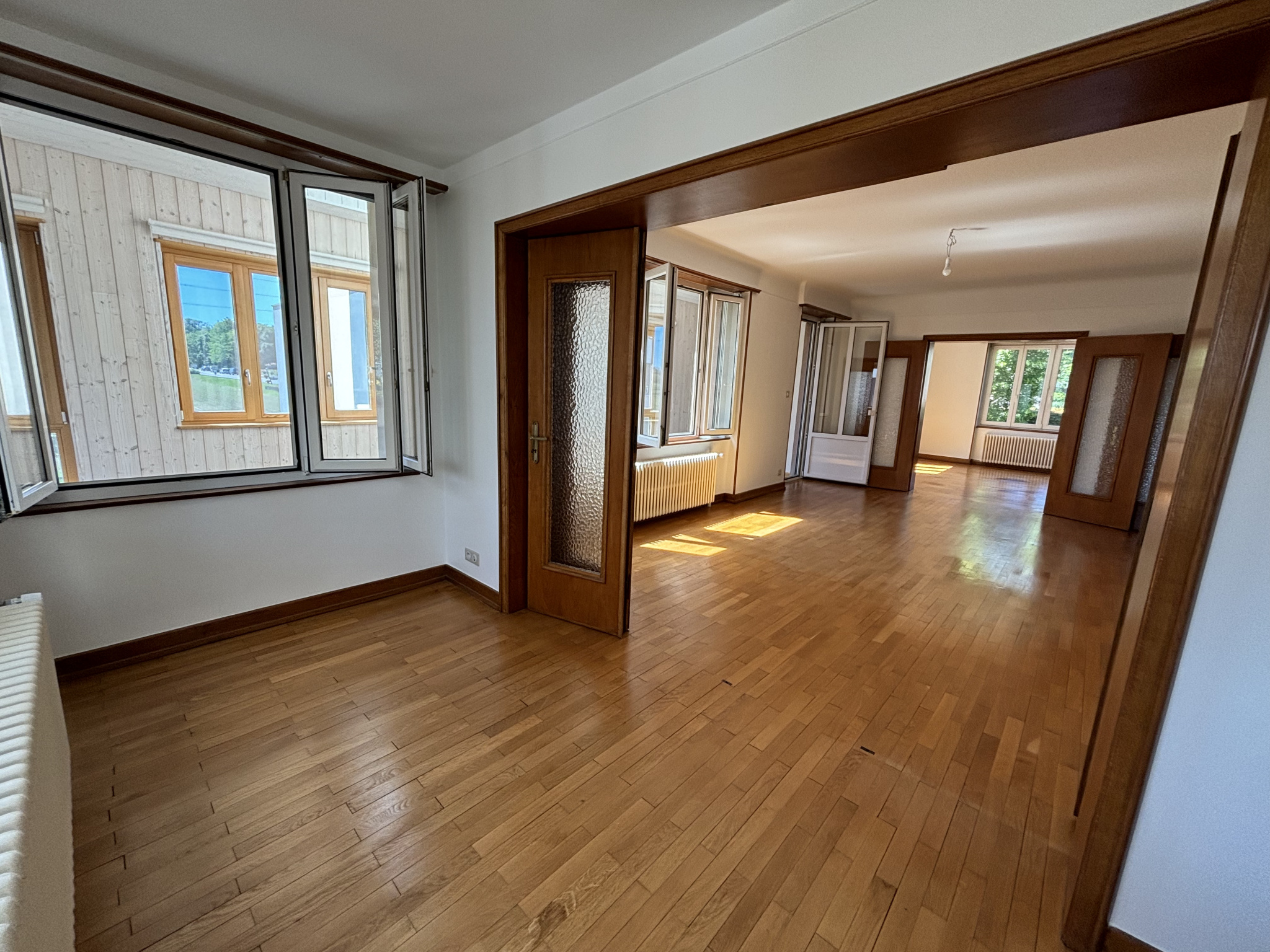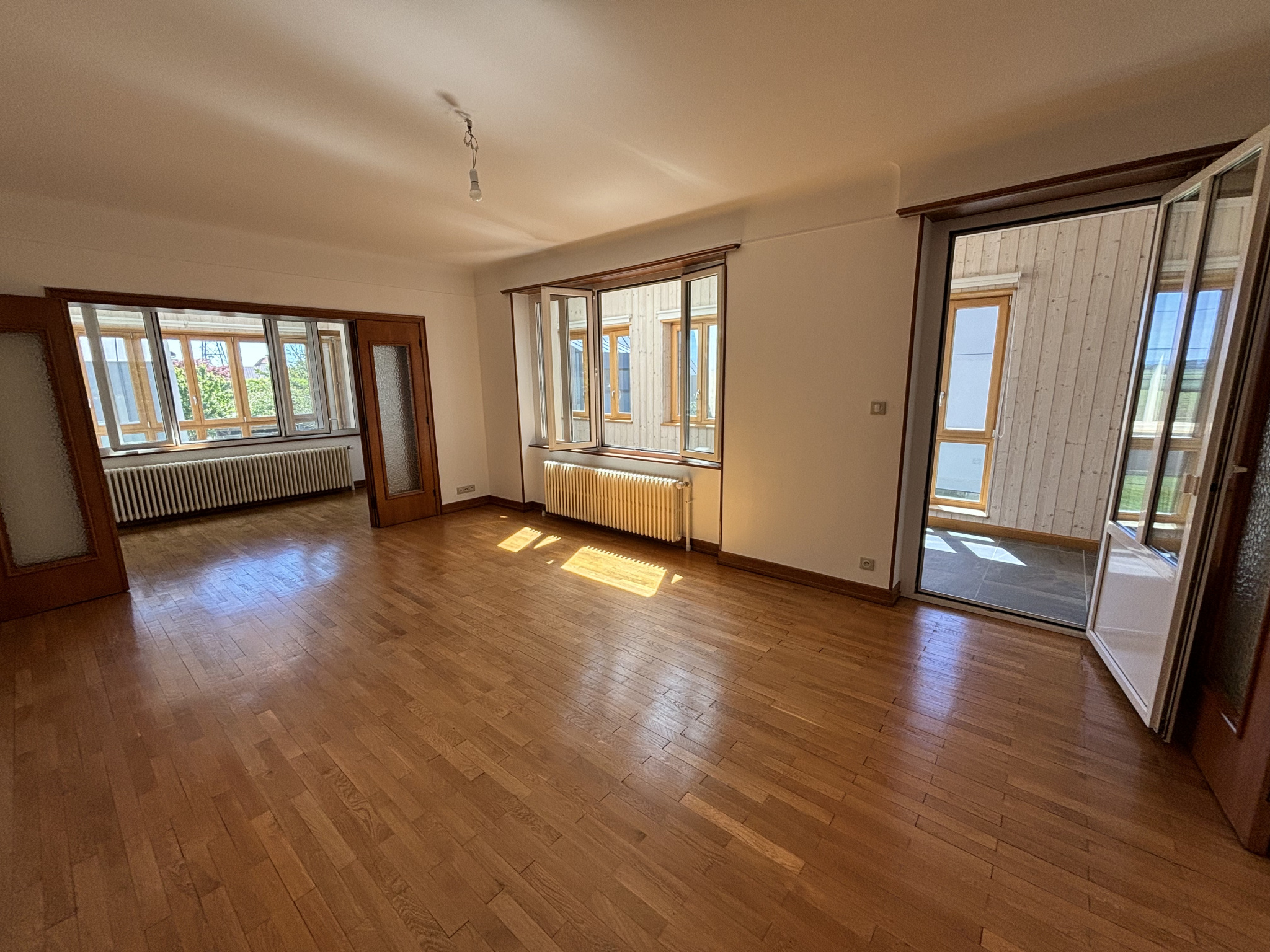 Au 1er étage, le 2nd appartement d'une superfice de 113m2 est composé d'un hall d'entrée, de 3 chambres, d'une cuisine entièrement équipée et carrelée d'une superficie de 17m2, d'un séjour de 23m2 ouvert sur la véranda de 9m2 et d'une salle de bains comprenant une douche, une baignoire, une simple vasque avec sous meuble de rangement et un porte séche serviette. Vient compléter un WC séparé et un Karlofa idéal pour vous réchauffer lors des saisons automnales et hivernales. Ce logement est actuellement loué à 1 300 EUR CC.