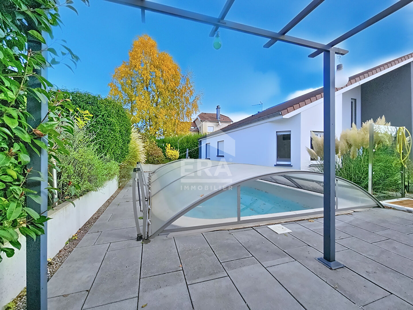 A l'extérieur, sur un TERRAIN CLOS et SANS VIS-à-VIS, profitez d'une TERRASSE ENSOLEILLÉE et d'une magnifique PISCINE EXTÉRIEURE COUVERTE exposée sud et CHAUFFÉE PAR UNE POMPE à CHALEUR, idéale pour se détendre en toute tranquillité.