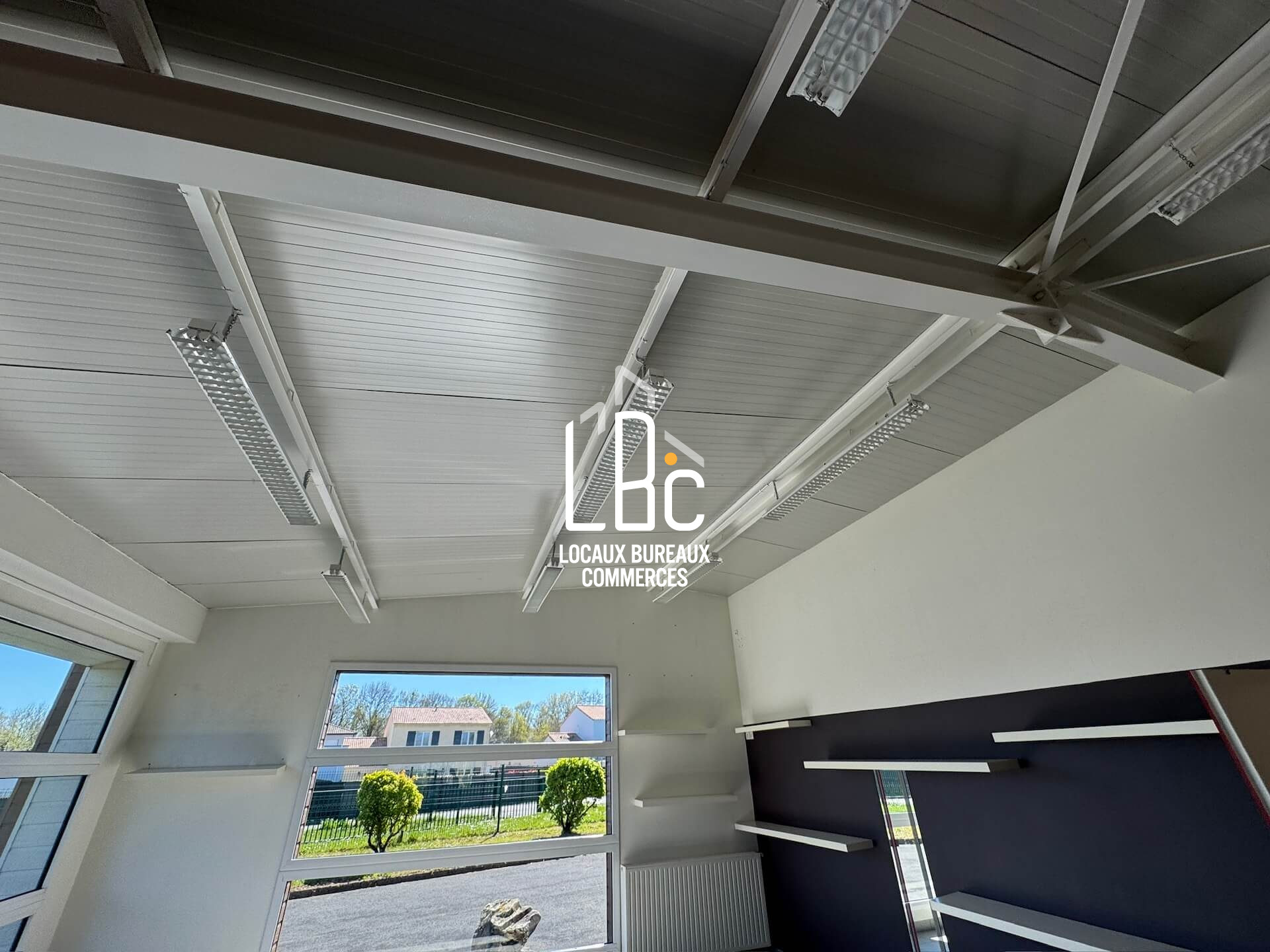 Ce local d'activité d'une superficie totale de 150 m² est situé en zone artisanale et est disponible immédiatement. Il comprend un accueil/showroom carrelé de 56 m², des bureaux carrelés en open space de 38 m², une salle de pause carrelée équipée d'un évier et d'une chaudière à ventouse gaz, ainsi qu'un espace de stockage de 38 m² avec une porte sectionnelle. Le local dispose également de toilettes.