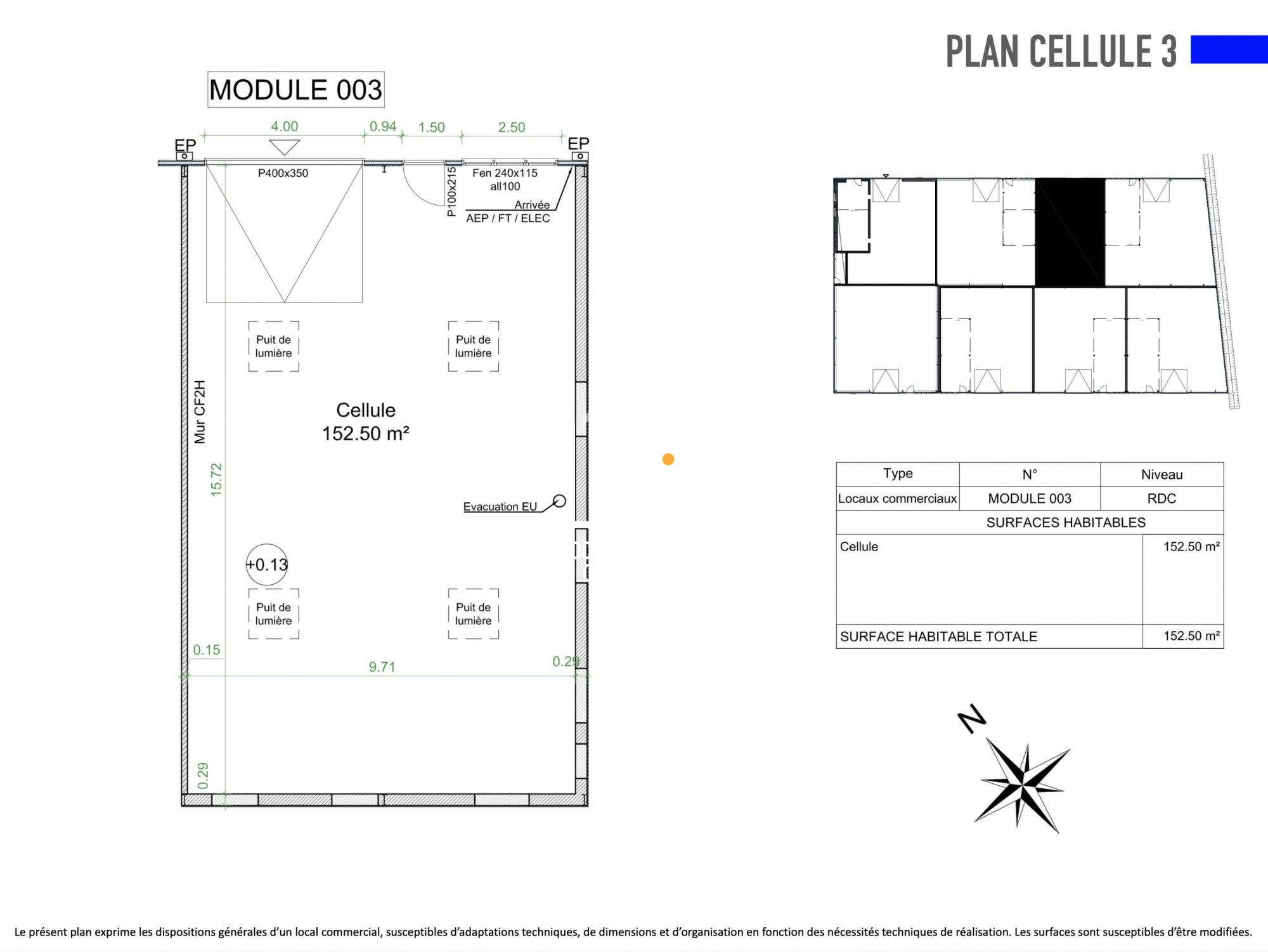 3 places de stationnement pour véhicules légers incluses