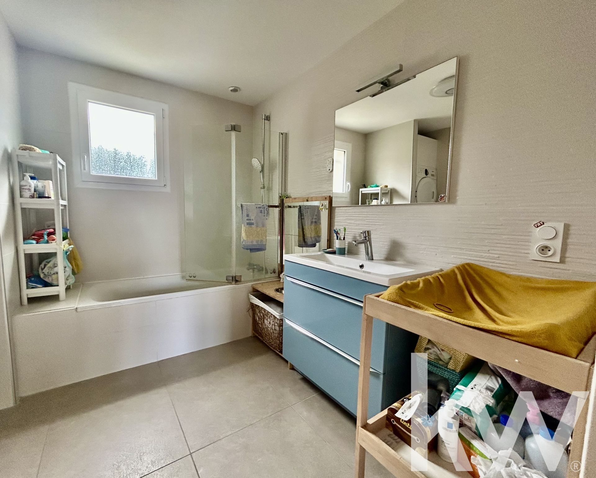 Cette charmante maison individuelle de 7 pièces vous propose une vie de plain pied comprenant, une entrée, une pièce de vie de 30 m2 avec un poêle, une cuisine aménagée ouverte, quatre chambres, une salle d'eau, une salle de jeu et une salle de bain avec toilettes, .