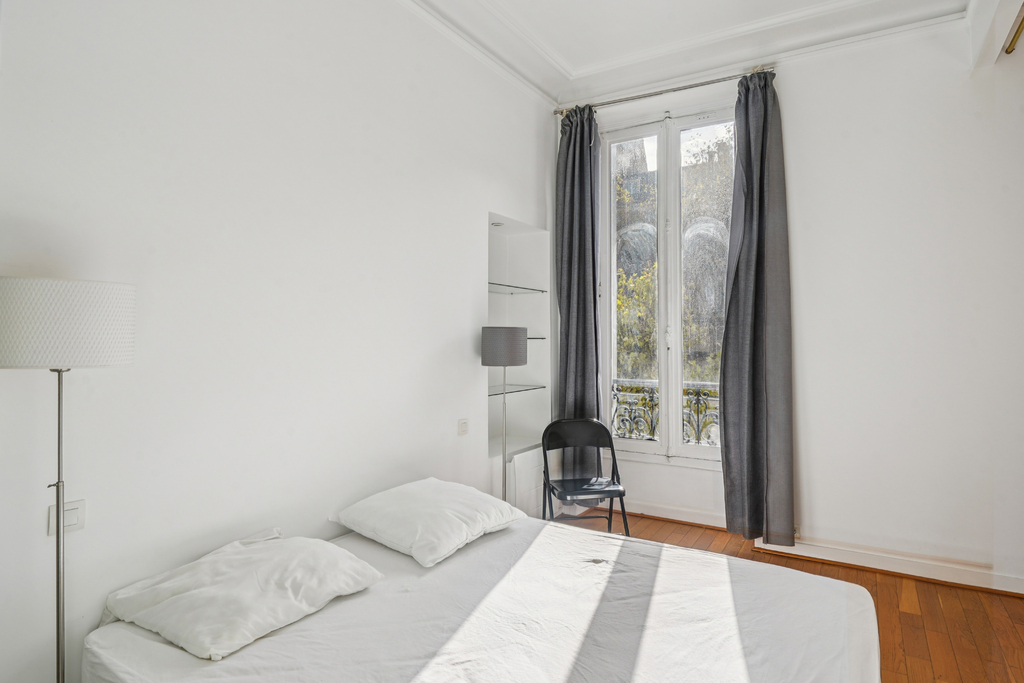 Offrant une belle hauteur sous plafond de plus de 3 mètres, ce bien séduit par son charme parisien, son calme et sa luminosité, grâce à son exposition sud-ouest et à ses grandes fenêtres.