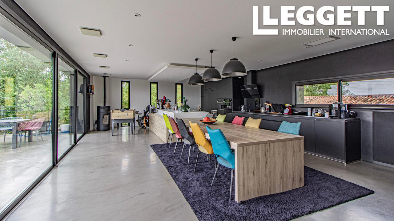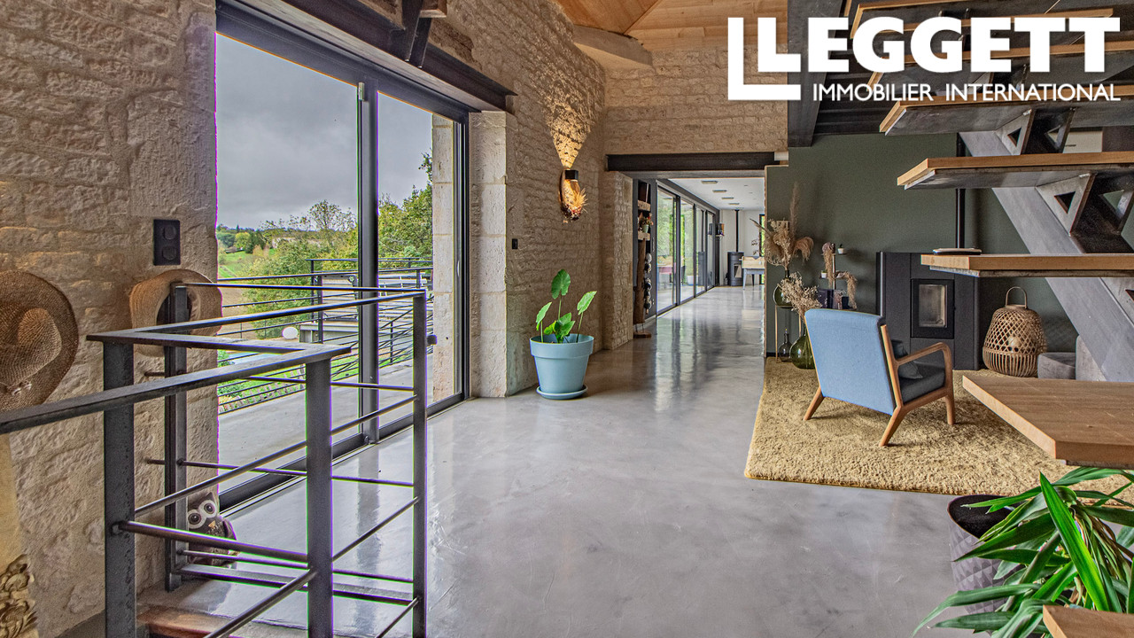 A40730SNM46 - Cette superbe maison restaurée allie à merveille le charme de l'ancien et l'élégance contemporaine. Un salon raffiné avec poêle à bois mène à une magnifique cuisine-salle à manger de 72m² baignée de lumière, ouverte sur la terrasse avec piscine et vue imprenable sur la campagne. Deux belles chambres, chacune avec dressing et salle d'eau privative, offrent confort et intimité. En rez-de-jardin, un studio indépendant de 35m² comprend chambre, cuisine, salle d'eau, WC et accès privé. À l'extérieur, profitez d'une grande terrasse, d'un pool house avec cuisine et salon, d'un espace spa sur terrasse bois et d'un jardin paysager clos. Sous la terrasse, vaste zone de stationnement. Un bien plein de charme et de créativité, mêlant pierre blanche et métal noir pour un style unique et raffiné.