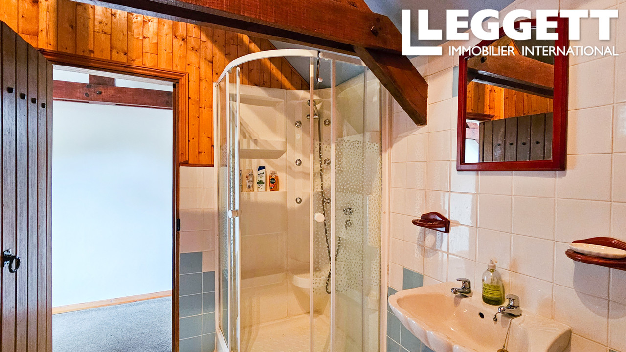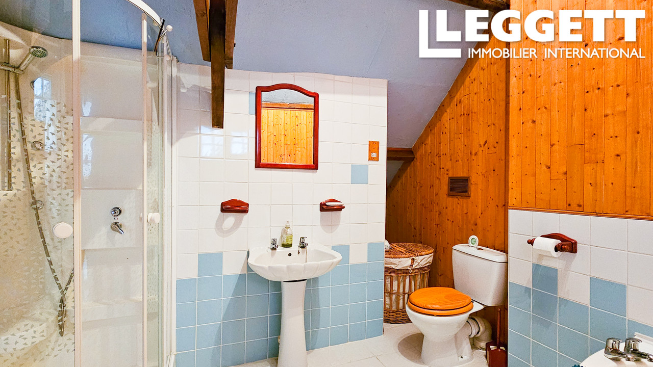 Une véranda mène à un spacieux séjour-salle à manger, avec une cuisinière à charbon qui alimente le chauffage central de toute la maison et peut également servir à cuisiner. Un second séjour avec poêle à bois et une cuisine entièrement équipée complètent le rez-de-chaussée. À l'étage, trois belles chambres avec plafond cathédrale et une grande salle de bains familiale.