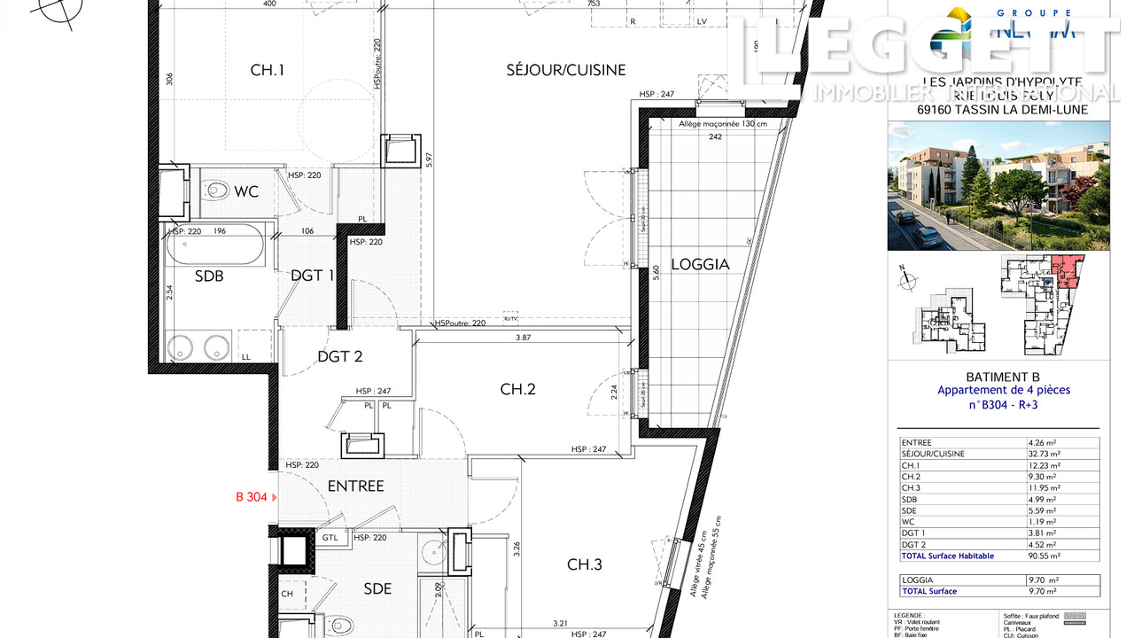 A41028YAB69 - Situé au 3e étage de la résidence haut de gamme Les Jardins d'Hypolyte à Tassin-la-Demi-Lune, ce T4 neuf de 90,55 m² séduit par son confort moderne, sa luminosité et son environnement calme et verdoyant, à seulement 10 minutes de Lyon.