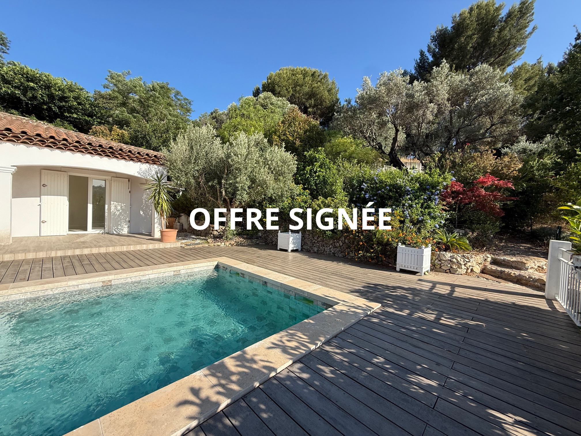 Dans un secteur calme et recherché, venez découvrir cette belle villa familiale de 160 m2 offrant une vue dégagée et un cadre de vie privilégié. Accueillante pour recevoir vos enfants, votre famille, vos amis, vous apprécierez les 5 chambres (2 indépendantes), les 4 salles de bains. Climatisation réversible dans la suite parentale et une des chambres indépendantes. L'espace de vie comprend un large séjour-salon cheminée avec baies à galandages et cuisine semi-ouverte équipée avec accés sur la terrasse et la piscine. Communication intérieure au garage et à un sous sol pour le stockage et bricolage. Très belle parcelle de 1000 m2 arborée avec piscine traditionnelle en béton carrelée de 8.50x3.50 au sel avec volet intégré. Arrosage automatique. Coup de coeur assuré ! Une villa rare sur le secteur, à visiter sans tarder.