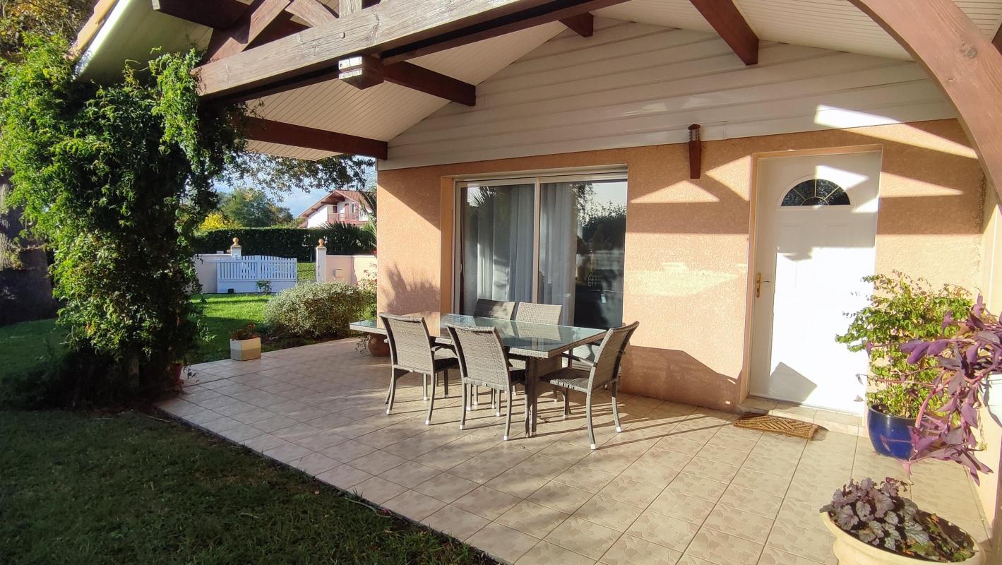 PEYREHORADE, au calme sur les hauteurs, à deux pas du centre et des commodités, belle villa de plain pied en bon état composée d'une grande pièce de vie lumineuse ouverte sur une cuisine aménagée, trois chambres, un bureau transformable en 4ème chambre, salle de bains, WC, cellier.