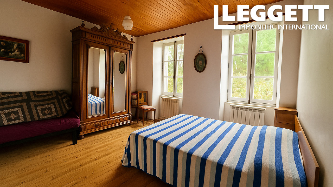 D'une surface habitable d'environ 130 m², la propriété comprend un hall d'entrée, un salon lumineux et spacieux, une salle à manger avec cheminée, une cuisine équipée, trois chambres de bonne taille, une salle de bains et toilettes séparées. La maison bénéficie d'une pompe à chaleur à air, ce qui lui confère une énergétique D.
