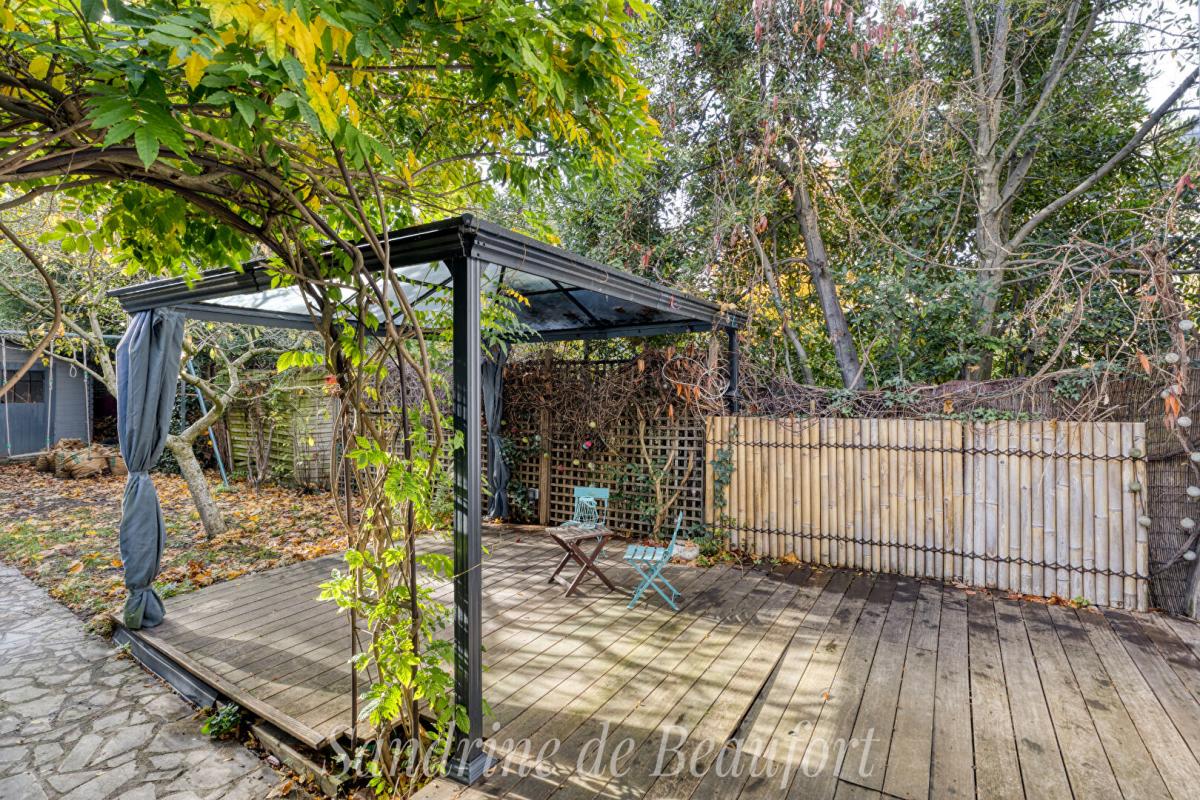 Face à ce ravissant extérieur de 200 m2, entretenu et arboré, exposé Sud Ouest avec aucun vis à vis, vous n'aurez pas l'impression d être en ville!