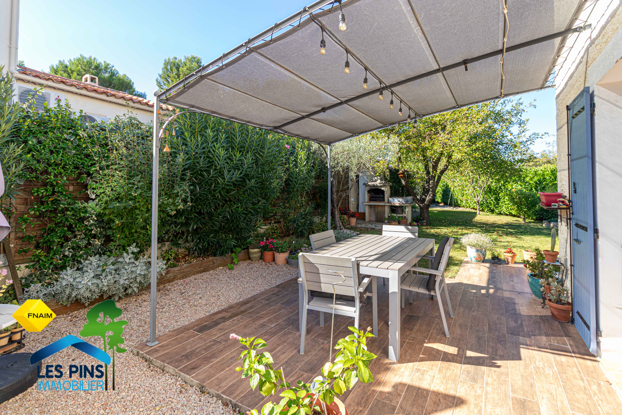 NOUVEAUTÉ EXCLUSIVITÉ Les Pins Immobilier - À deux pas des commodités et des bus, charmante maison en parfait état comprenant 3 chambres, une salle d'eau et 2 WC. Belle pièce de vie avec cuisine Schmidt entièrement équipée, ouverte sur le jardin arboré et piscinable d'environ 400 m2. Une petite véranda peut faire office de bureau. Garage avec espace buanderie. Prestations: double vitrage, volets aluminium, climatisation, arrosage automatique, eau communale, tout-à-l'égout, fibre optique. Pas d'amiante, pas d'anomalie électrique. Prix de vente: 548 000 EUR honoraires inclus à la charge du vendeur.RARE A LA VENTE : visite uniquement avec votre agence FNAIM de Bouc-Bel-Air, Les Pins Immobilier.