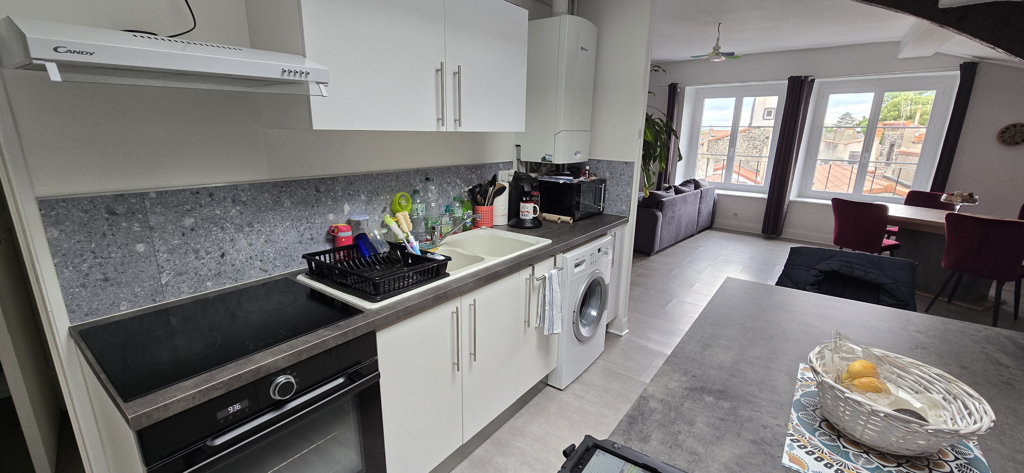Situé dans une petite copropriété de Riom, 3ème et dernier étage sans aascenseur pour ce bel appartement comprenant une très belle et grande pièce de vie avec cuisine, trois pièces (une chambre et deux plus petites) salle d'eau. Le logement est isolé thermiquement et lumineux. Belles poutres apparentes. Chauffage central au gaz de ville. Votre contact : Christophe combronde