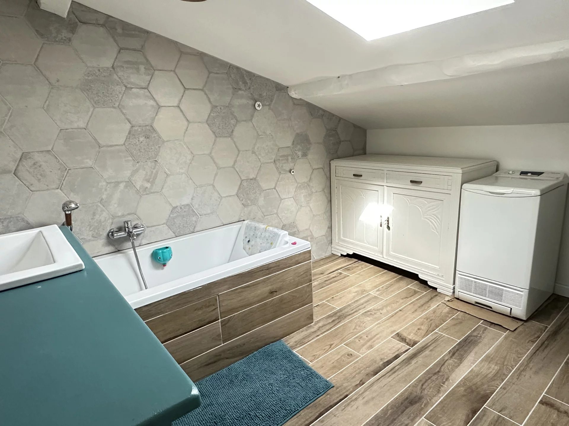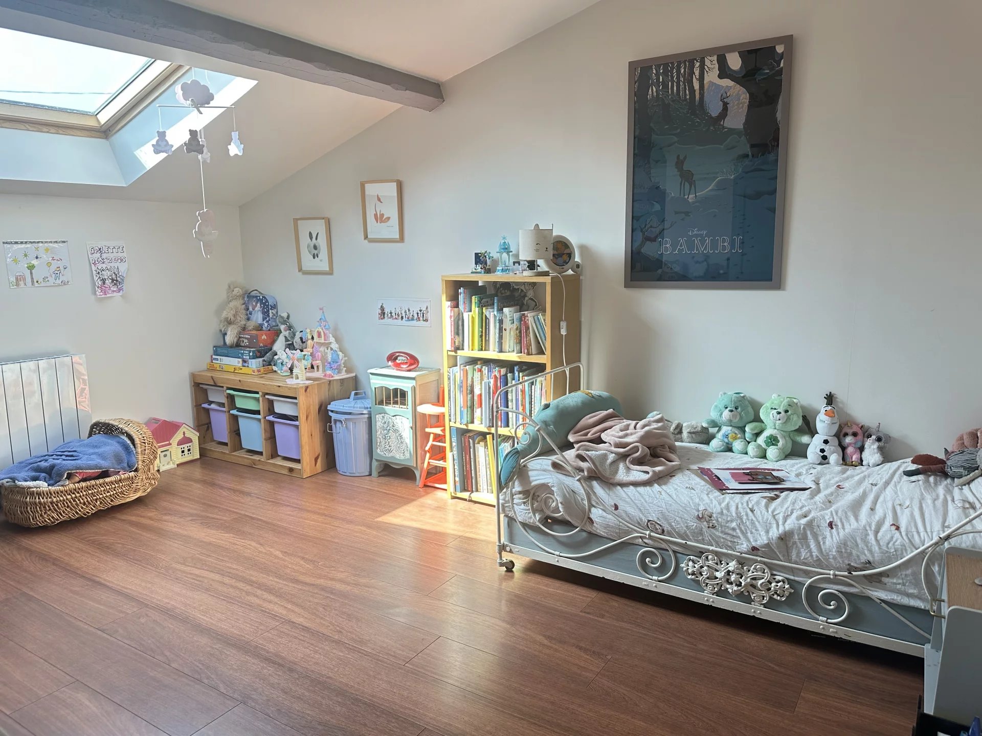 À l'étage, vous découvrirez : deux chambres supplémentaires, une salle de bain, une mezzanine pouvant faire office d'espace bureau, bibliothèque ou coin détente.
