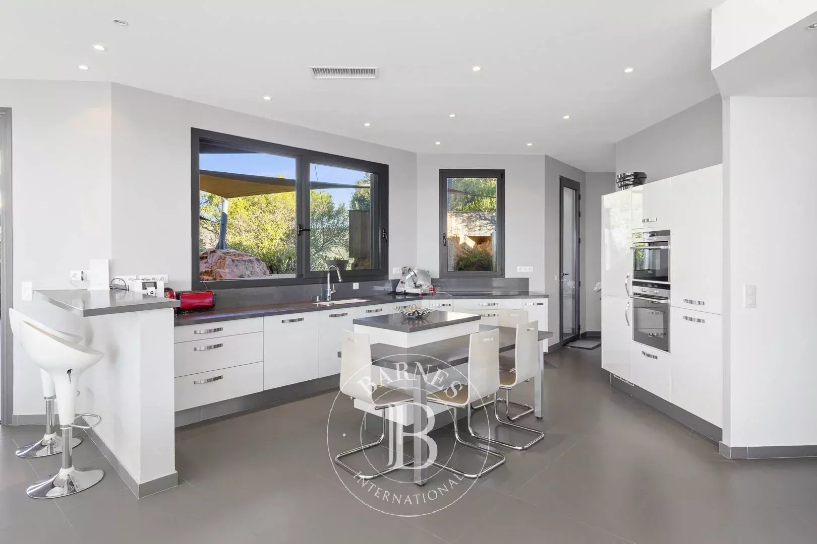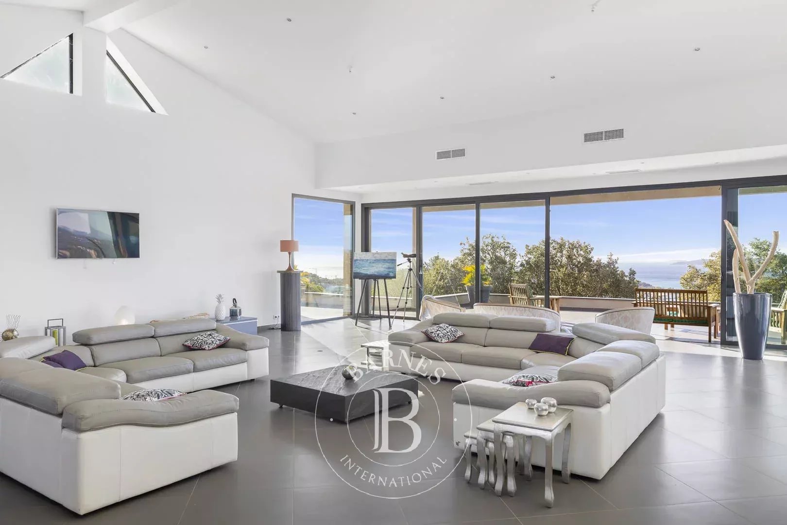 D’environ 596 m², la villa séduit par la générosité de ses espaces, baignés de lumière, avec une cuisine ouverte sur sur une vaste pièce de vie et une cave à vin. Elle dispose de 8 chambres, chacune avec salle d’eau et terrasse offrant une vue mer remarquable.