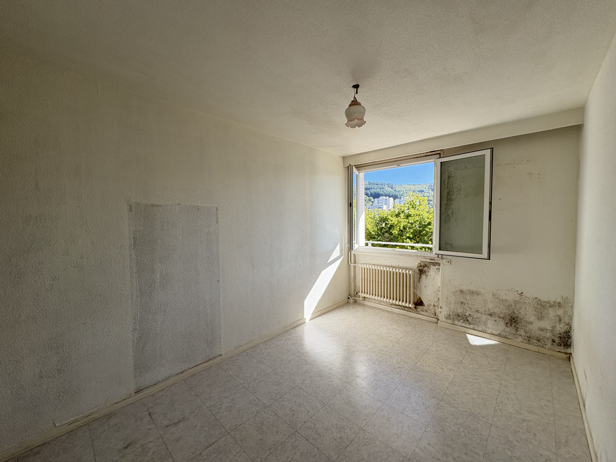 Saint-Etienne - Rue Marcel Sembat - Au 3 ème étage T4 de 71.45m2 comprenant double séjour, cuisine séparée, 2 chambres, salle d'eau. Balcon avec vue dégagée. Double vitrage pvc. Travaux à prévoir. Cave.
