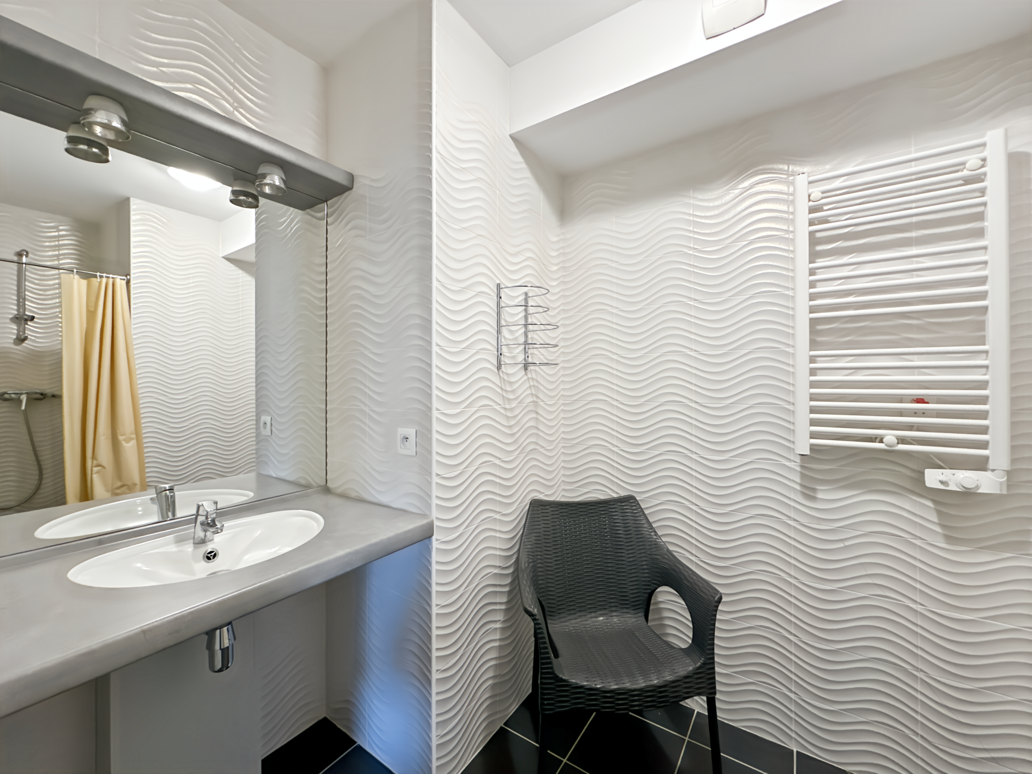 L'entrée qui dessert une pièce à vivre de 19m2 environ avec kitchenette, une chambre, une salle de bains et une suite parentale avec salle d'eau privative.
