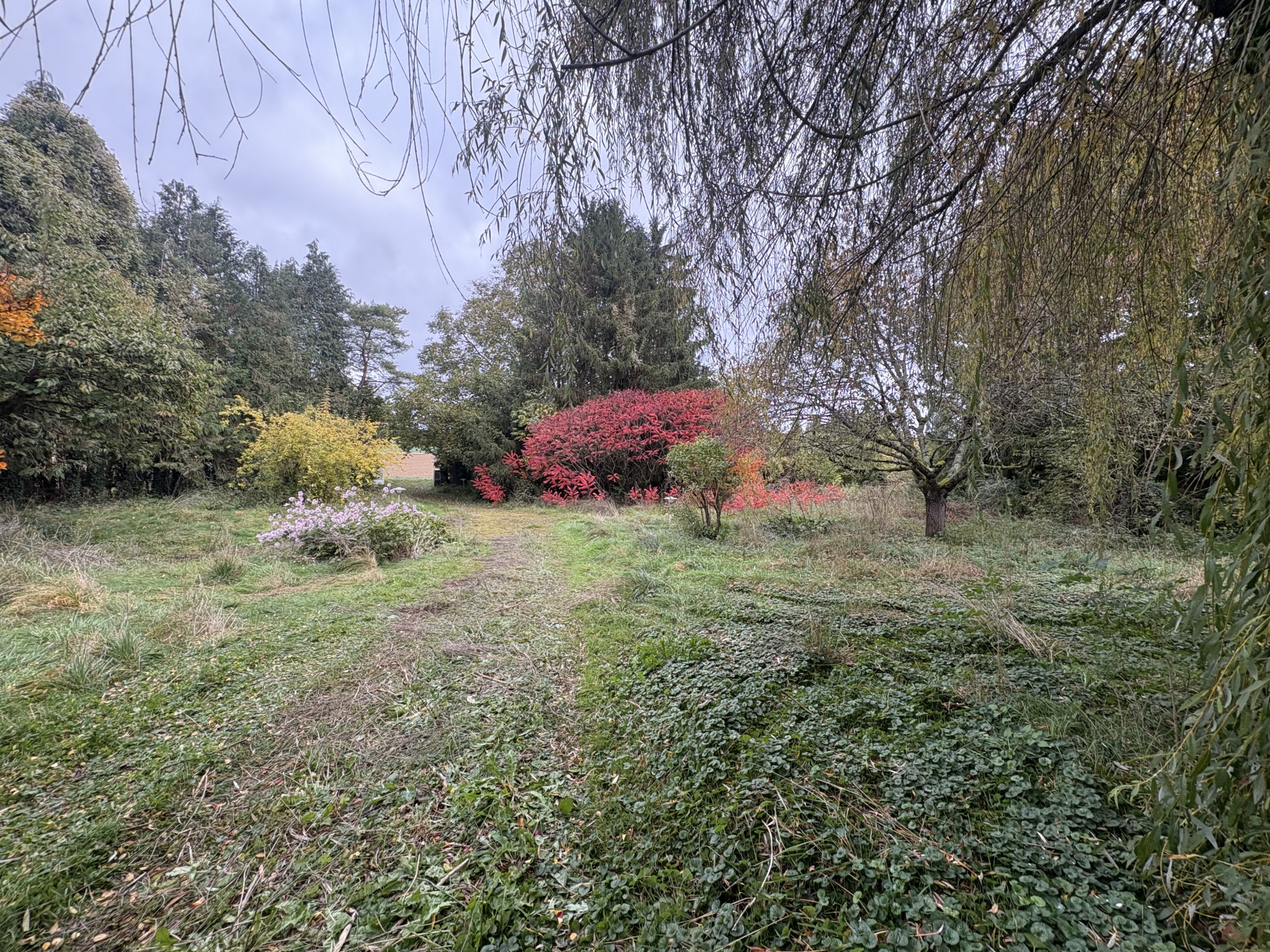 Elle propose également un grand garage, un cabanon et un grand terrain arboré.