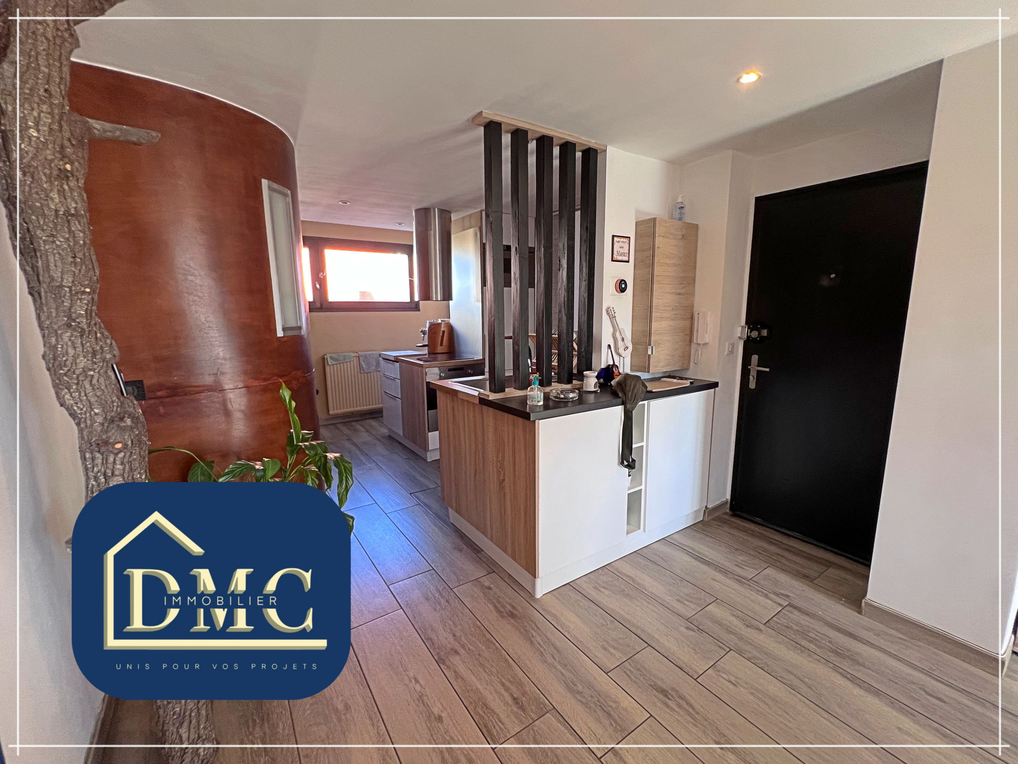 L'entrée s'ouvre sur un vaste séjour lumineux, prolongé par un balcon offrant une vue dégagée. La cuisine moderne et équipée, semi-ouverte sur la pièce de vie, allie convivialité et fonctionnalité.